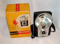 My first camera: http://www.ozcamera.com/photo%2011/1117.jpg A Kodak Brownie Starflash. Took 127 roll film. I don't know how old I was when my folks got it for me, but I'm guessing around 10 or so. BTW, Sid, in 1966, I too was in grade 4, so we must be around the same age. Anyway, I remember going to camp in the summer of 1967, and of course I brought my camera with me. I took several photos of the lake that were tilted at a 45 degree angle. I did this on purpose, 'cause I though it would look cool, the horizon going corner to corner and all (it shot square frames) My folks laughed (well, not out loud, but I think they were stifling laughs so as not to hurt my feelings). I told them I did it purposely, but my dad, who was a pretty good photographer (owned a Yashica A tlr) told me that one didn't shoot like that, and to try to keep the horizon parallel to the edges of the frame. Of course, nowadays, I'd just say, "Hey, man, that's my style!" Thanks, Sid and Paul. Great memories, eh? AFAIK, that Brownie's still in my Mom's attic. cheers, frank -- "Sharpness is a bourgeois concept." -Henri Cartier-Bresson