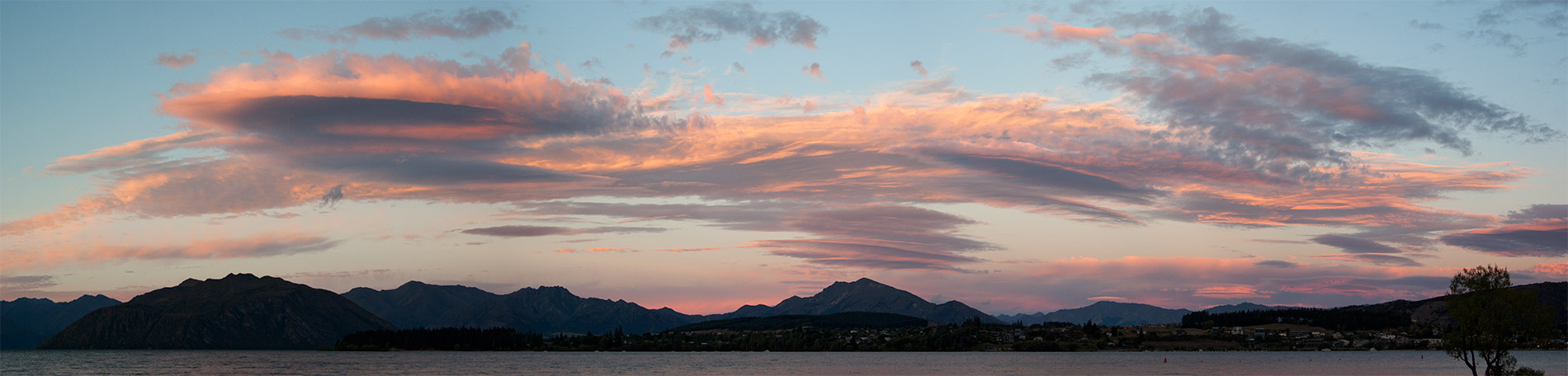 A sunset pic with lenticular clouds, taken in January. It's a panorama made from 5 photos.