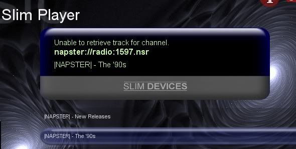 For several although the Napster plugin has been included in the latest SBS, there is a small issue related to the fact that it uses WMA based files. I get all sort of messages from my players saying "Connect timed out: Bada file descriptor, etc.
