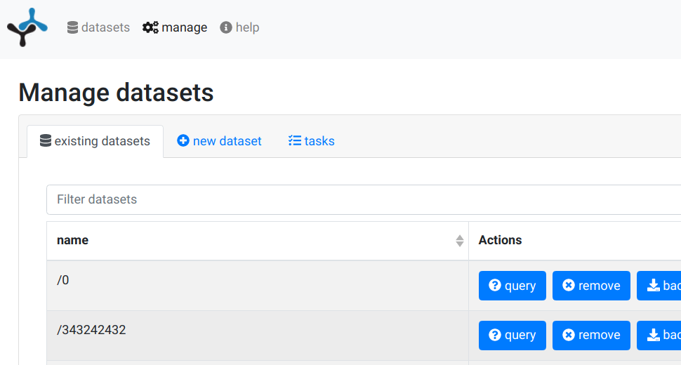 Last commit of the day: added "query" to the Manage Dataset view @afs. If that was not what you meant, it'll be easy to undo.  :sleeping_bed: -- This is an automated message from the Apache Git Service. To respond to the message, please log on to GitHub and use the URL above to go to the specific comment. To unsubscribe, e-mail: [email protected] For queries about this service, please contact Infrastructure at: [email protected] --------------------------------------------------------------------- To unsubscribe, e-mail: [email protected] For additional commands, e-mail: [email protected]