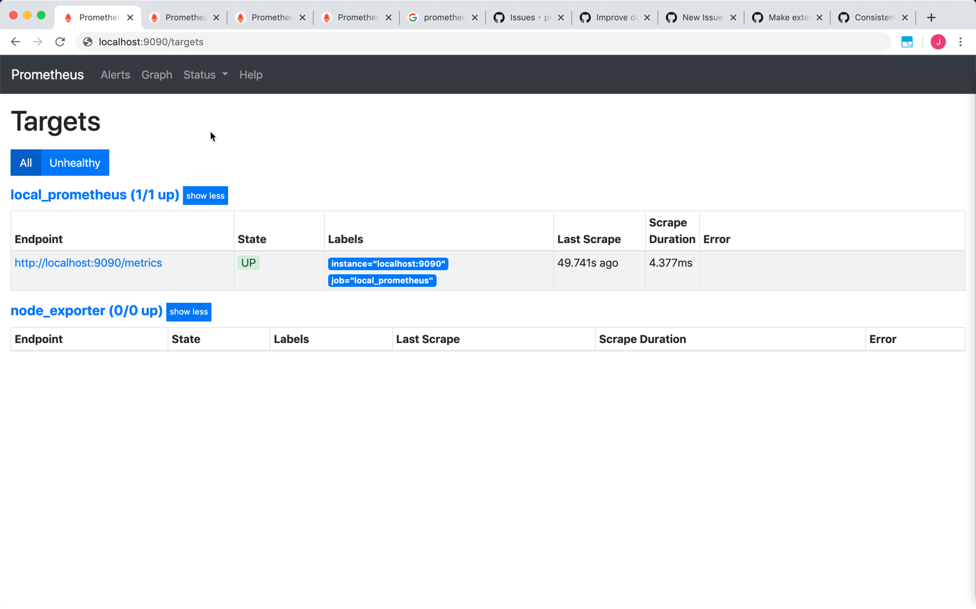 - targets: ['localhost:9090']