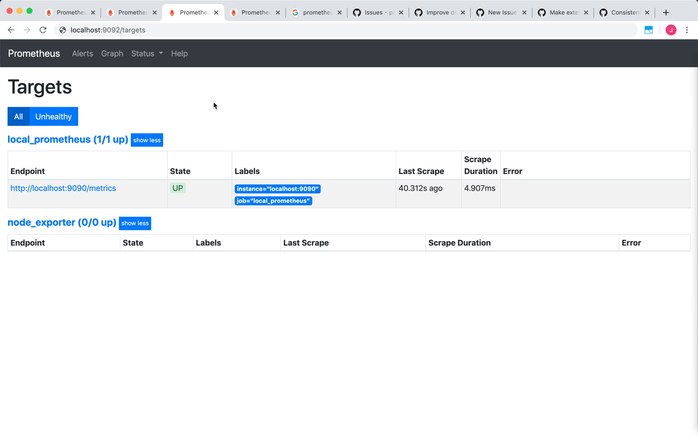 And a node exporter is listening on localhost:9100 as metric data source.