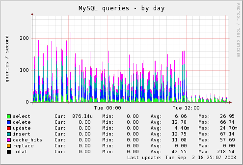 just to give some example: I installed today latest 0.24.x on my master. images speak better than anything else: https://durito.cronopios.org/mysql_puppetmaster.png also the load reduced to the half than before! :) thanks a lot! greets pete --~--~---------~--~----~------------~-------~--~----~ You received this message because you are subscribed to the Google Groups "Puppet Developers" group. To post to this group, send email to [email protected] To unsubscribe from this group, send email to [EMAIL PROTECTED] For more options, visit this group at http://groups.google.com/group/puppet-dev?hl=en -~----------~----~----~----~------~----~------~--~---