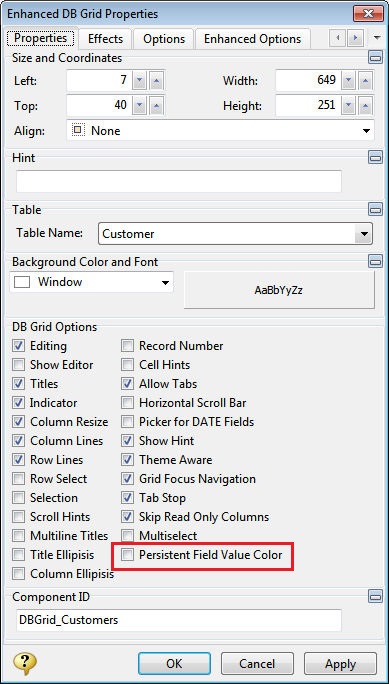 Tip of the Day: Persistent Field Value Color in Enhanced DB Grids