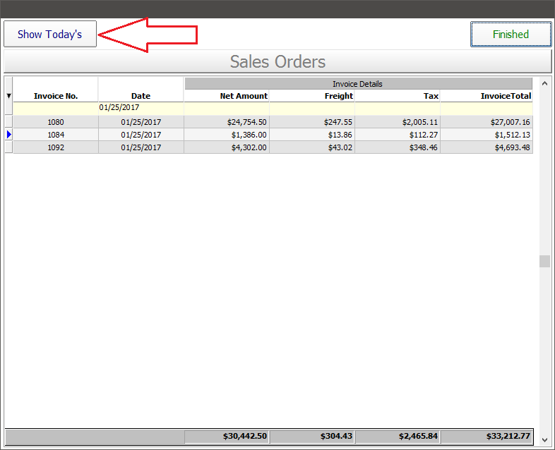 If your users don't want to use the filter or are reluctant to type today's date, then create a button that automatically filters the Enhanced DB Grid and displays all "Today's" orders.