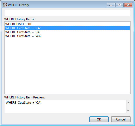 Tip of the Day: WHERE Clause History for Database Explorer Items