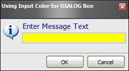 Monday, October 1, 2012 Tip of the Day: Using INPUT Color for DIALOG Command Product: R:BASE eXtreme 9.5 (32/64) Build..: 9.5.2.10920 or higher www.rupdates.com Section: Using INPUT Color for DIALOG Command