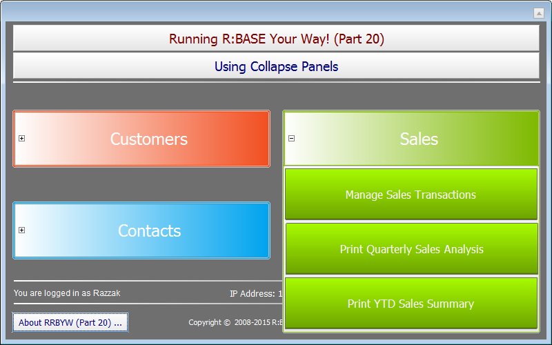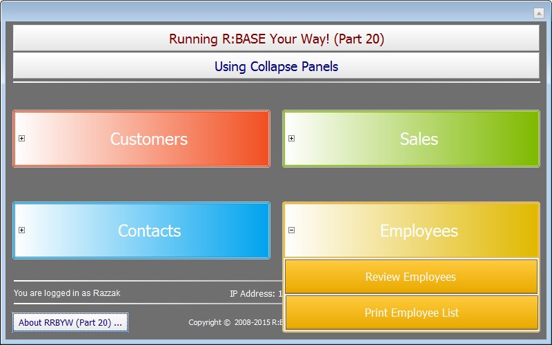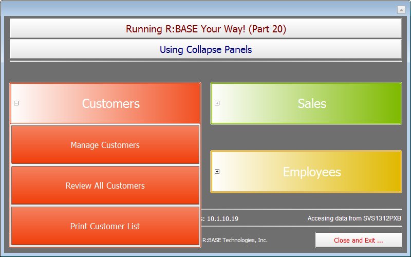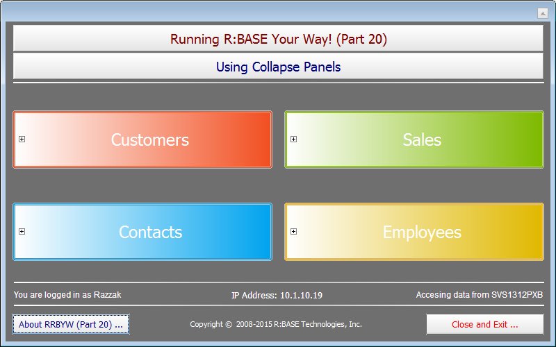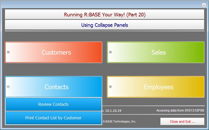 Application Title: Using Collapse Panels in R:BASE X Enterprise