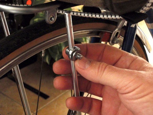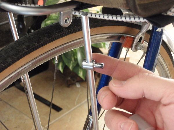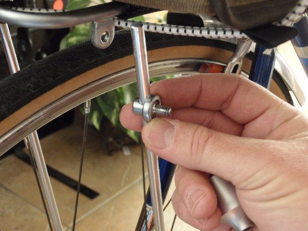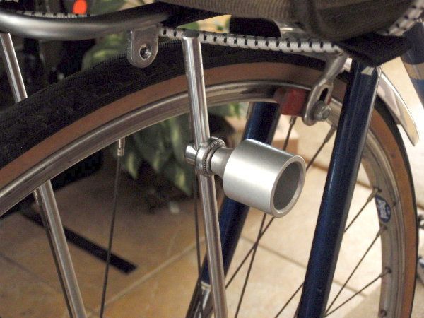 Note this this won't work on an M-12 or VO front rack with brazed/welded struts - it will only work on the racks that use separate rod struts and the Nitto 20184 Rack Nut and Bolt to attach the rod to the rack. Note that the M18 rack doesn't have M5 lugs, so there is no simple way to attach a light to the rack. While the Mark's rack does have M5 lugs, and you can attach a light mount directly to those, they're at the rear of the rack, and attaching on the strut lets you mount a light 6 inches forward. You need the spare Nitto 20184 assembly. http://www.rivbike.com/product-p/rh1-20184.htm <http://webmail.satx.rr.com/do/redirect?url=http%253A%252F%252Fwww.rivbike.com%252Fproduct-p%252Frh1-20184.htm> Slide the Nitto rack nut and bolt down the strut, face it out and you have an M6 mounting base for any of your strap-type light brackets. I'm sure others have been this far without the epiphany, because here you can use the Nitto nut and attach a bracket for your Edelux, et.al. lights. But I wanted a handlebar mount Cygolite on the strut. So I bought a Paul Gino light mount, re-drilled and tapped the M5 guide hole to the M6 thread, and used the tapped Gino mount in place of the nut. Also needs a lock washer, and I went with an M6 bellville spring washer. I used a fluteless (cold-forming) M6 tap on the Gino guide hole,because this forced me to open the hole from 5mm to 7/32", which took away the anodizing and gave me fresh metal. It should also produce harder threads than a chip-cutting tap. The tap was sold by McMaster as a hand-tap, and it worked great by hand (with lube - I did it right the first time) Here's the Nitto strut joint I took apart. (This joint has to come apart anyway, to gain access to the strut) <http://img.photobucket.com/albums/v728/bulldog1935/Raleigh/aaP1210001.jpg> the rod bolt loose on the strut <http://img.photobucket.com/albums/v728/bulldog1935/Raleigh/aaP1210003.jpg> Nitto clamp washer in place <http://img.photobucket.com/albums/v728/bulldog1935/Raleigh/aaP1210004.jpg> M6 bellville spring washer in place - the crown side goes toward the Gino <http://img.photobucket.com/albums/v728/bulldog1935/Raleigh/aaP1210005.jpg> (here is where you could attach the Herse or VO strap bracket for other style light mounts) and my tapped Gino mount completes the assembly <http://img.photobucket.com/albums/v728/bulldog1935/Raleigh/aaP1210006.jpg> hanging the light for vertical clearance fit <http://img.photobucket.com/albums/v728/bulldog1935/Raleigh/aaP1210008.jpg> After you have the position and alignment right, you should tighten the Gino with a pair of channel lock pliers (and maybe a chamois) to get some compression of the bellville spring washer - this makes for a shock- and vibration-proof joint. and an elegant solution <http://img.photobucket.com/albums/v728/bulldog1935/Raleigh/aaP1210010.jpg> I'm waiting on my replacement Nitto fitting to reassemble the top of the strut to the rack, but it will arrive today in a rivbike order. It doesn't show in my photos, but the light beam is a good inch and change above the tire and I have plenty of vertical clearance to reach the light button under a wide rando bag. On my M18 rack, I have the long struts attached to my front dropout M5 lugs, but this should also work fine with shorter struts attached to fork clamps or lugs. -- You received this message because you are subscribed to the Google Groups "RBW Owners Bunch" group. To view this discussion on the web visit https://groups.google.com/d/msg/rbw-owners-bunch/-/5o3DGSqD1nEJ. To post to this group, send email to [email protected]. To unsubscribe from this group, send email to [email protected]. For more options, visit this group at http://groups.google.com/group/rbw-owners-bunch?hl=en.