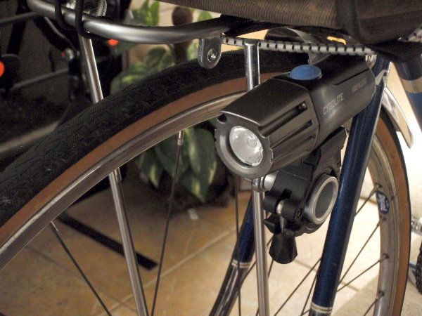 Came up with a great solution for mounting a Cygolite on the strut of my Nitto M-18 front rack . It will also work for a Mark's Rack.
