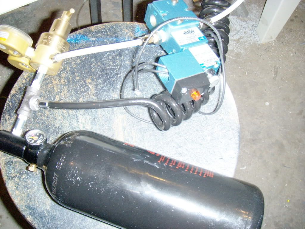 Nice work Mark, this is a good looking setup. The timing portion of your reload pulse can be accomplished by building a one-shot 555 timer circuit. I built one exactly the same to control the 24v firing valve I have for the homemade marker, so just let me know if you need a hand with that.
