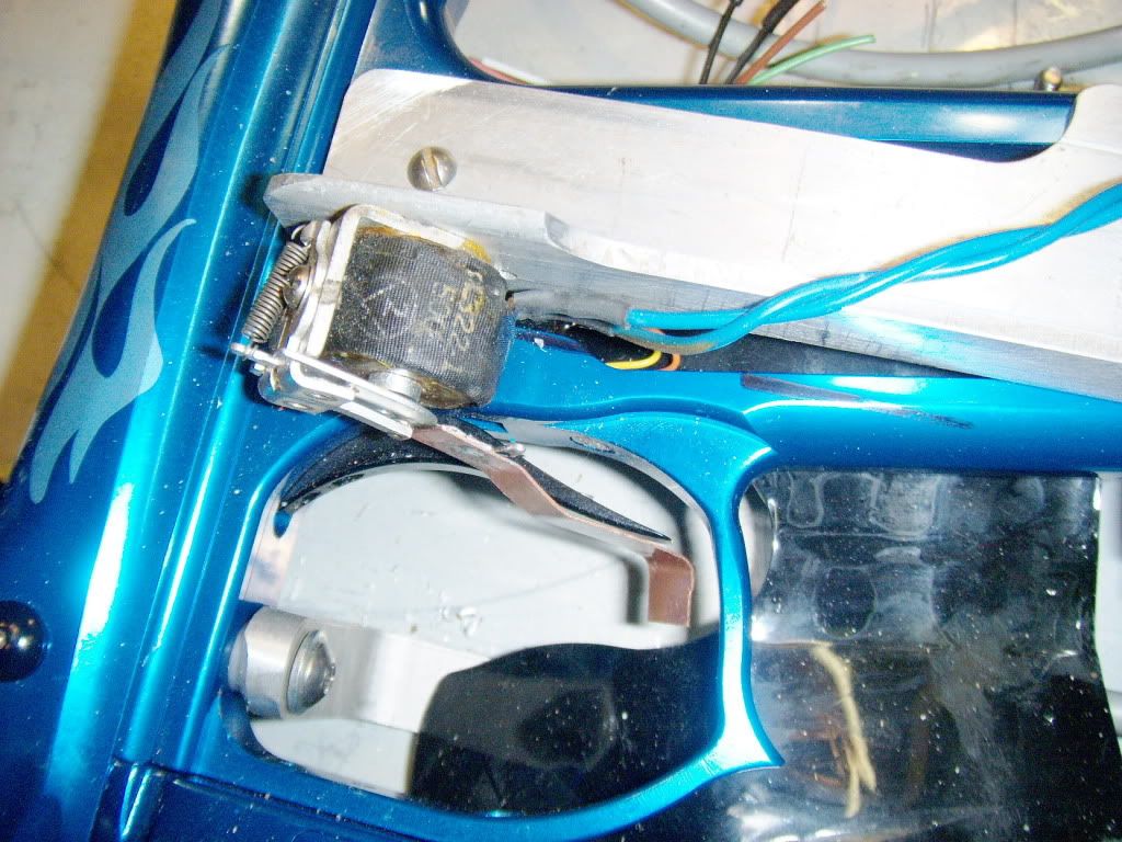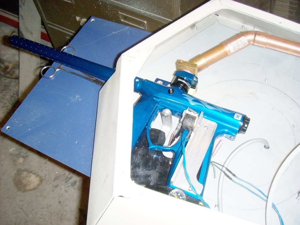 Ben -----Original Message----- From: [email protected] [mailto:[email protected]] On Behalf Of Mark_123522 Sent: Thursday, 29 April 2010 10:24 AM To: R/C Tank Combat Subject: [TANKS] Re: Got PaintBall Feed Figured out!!!!! Here is the 63 cubic inch air tank, with the oxygen regulator attached. See the blue, electric, air valve. http://i192.photobucket.com/albums/z65/mm123521/HPIM0869.jpg http://i192.photobucket.com/albums/z65/mm123521/HPIM0870.jpg http://i192.photobucket.com/albums/z65/mm123521/HPIM0871.jpg Here is the gun and copper tube magazine. The gun rotates about the paintball feed tube when it elevates (no elevate servo yet): http://i192.photobucket.com/albums/z65/mm123521/HPIM0872.jpg http://i192.photobucket.com/albums/z65/mm123521/HPIM0873.jpg http://i192.photobucket.com/albums/z65/mm123521/HPIM0830-1.jpg For a pressurized , tubular, magazine to work the end must be blocked off. See the black, plastic, screw on, cap. Remove the cap to load paintballs, screw it back on to seal off the loading hole. The cap and loading hole are accessable from the top of the turret. Pictures show the hinged turret open. http://i192.photobucket.com/albums/z65/mm123521/HPIM0873-1.jpg http://i192.photobucket.com/albums/z65/mm123521/HPIM0877.jpg http://i192.photobucket.com/albums/z65/mm123521/HPIM0875.jpg http://i192.photobucket.com/albums/z65/mm123521/HPIM0876.jpg This is the trigger actuator. It is a 24 volt, DC relay, with an extension soldered on to the aramature. The aramature extension pushes the trigger. Works very good, because the gun has a "hall effect" trigger sensor that requires very little force to actuate.: http://i192.photobucket.com/albums/z65/mm123521/HPIM0878.jpg http://i192.photobucket.com/albums/z65/mm123521/HPIM0879.jpg Mark On Apr 28, 6:05 pm, Mark_123522 <[email protected]> wrote: > I built Frank Pittelli's, air assisted, "Tubular Magazine", paintball > feed system:http://www.rctankcombat.com/articles/tubular-magazine/ > > and was dissapointed when it did not work. > I tapped my barrel and ran a hose to the magazine as described in the > "How To" article. > There was practally no air pressure available to push the paintballs > down the magazine. > I was dissapointed, after building the system, drilling holes in my > turret and barrel, etc, and it not working. > > BUT: > > I salvaged the idea. > I got a 24 volt, electric operated air valve. > I supply the valve with 60 PSI from a small welding (oxygen) > regulator. > The oxygen regulator is tapped into the 450 PSI, regulated pressure, > from my 63 cubic inch air tank. > > It is so powerfull that it will feed paintballs uphill! > If you turn up the pressure, it will expell the paint ball out the > barrel at low velocity. > If you turn up the pressure to 125 PSI, it will move the paintballs > with such force as to break them in the magazine! > > Right now, I am operating the air valve manually. > It only takes a very, very, very short burst of air to move the balls. > > When it is finished, it will include a timing system that will perform > the following sequence: > 1 RC transitter signels "fire" > 2 Rc reciever turns on a "servo switch" to activate the timing system. > 3 timing system triggers the firing solenoid on the gun, and gun fires > 4 timing system waits for .5 seconds, then pulses the air valve to > move paintballs down the magazine, for the next shot. > > The timing system delays the burst of air to the magazine, until the > gun has finished shooting the paintball. This keeps the magazine air > demand from interfering with shooting the paintball. > The system will have adjustable air pressure(the oxygen regulator), > and adjustable air pulse duration (from the timing system). > > Tubular magazine is from 3/4 inch copper tubing, and holds 40 balls. > It has a 45 degree elbow, a 90 degree elbow, and two straight > sections. > > When complete, I will post pictures of the system. > > Mark > > -- > You are currently subscribed to the "R/C Tank Combat" group. > To post a message, send email to [email protected] To > unsubscribe, send email to [email protected] > Visit the group athttp://groups.google.com/group/rctankcombat -- You are currently subscribed to the "R/C Tank Combat" group. To post a message, send email to [email protected] To unsubscribe, send email to [email protected] Visit the group at http://groups.google.com/group/rctankcombat -- You are currently subscribed to the "R/C Tank Combat" group. To post a message, send email to [email protected] To unsubscribe, send email to [email protected] Visit the group at http://groups.google.com/group/rctankcombat