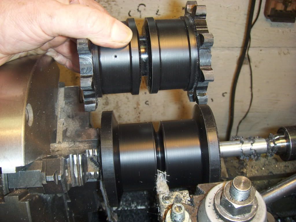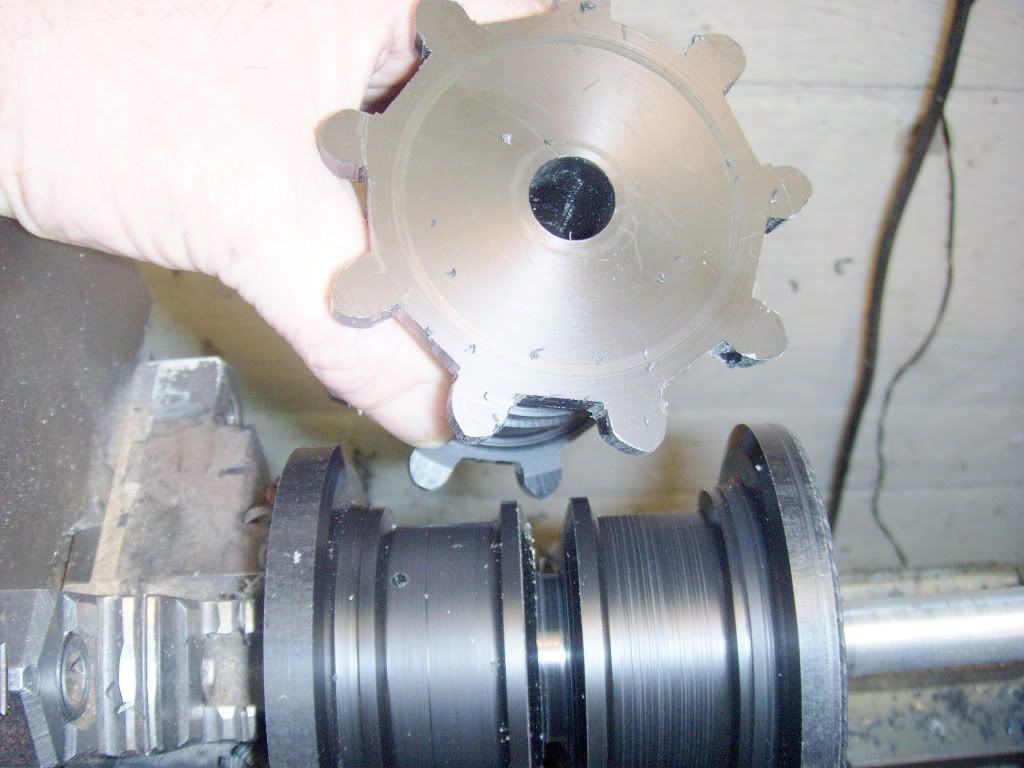 Cutting the track drive sprockets this week. The drive sprockets are 3.75 inch in diameter, with a pitch diameter of 3.15 inches or so. They have 9 flats / teeth and a .625 inch axle hole. Mark http://i192.photobucket.com/albums/z65/mm123521/Track_Array2.jpg http://i192.photobucket.com/albums/z65/mm123521/Track_Array.jpg http://i192.photobucket.com/albums/z65/mm123521/HPIM1011.jpg http://i192.photobucket.com/albums/z65/mm123521/HPIM1010.jpg http://i192.photobucket.com/albums/z65/mm123521/HPIM1009.jpg http://i192.photobucket.com/albums/z65/mm123521/HPIM1004.jpg http://i192.photobucket.com/albums/z65/mm123521/HPIM1006.jpg http://i192.photobucket.com/albums/z65/mm123521/HPIM1002.jpg http://i192.photobucket.com/albums/z65/mm123521/HPIM1013.jpg http://i192.photobucket.com/albums/z65/mm123521/HPIM0998.jpg http://i192.photobucket.com/albums/z65/mm123521/HPIM1015.jpg http://i192.photobucket.com/albums/z65/mm123521/HPIM0997.jpg http://i192.photobucket.com/albums/z65/mm123521/HPIM1016.jpg http://i192.photobucket.com/albums/z65/mm123521/HPIM0995.jpg http://i192.photobucket.com/albums/z65/mm123521/HPIM0998.jpg -- You are currently subscribed to the "R/C Tank Combat" group. To post a message, send email to [email protected] To unsubscribe, send email to [email protected] Visit the group at http://groups.google.com/group/rctankcombat