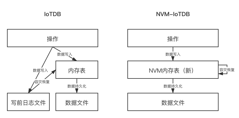 NVM-IoTDB implements a new system architecture based on NVM, and abandons the traditional WAL, instead uses the non-volatile characteristics of NVM to ensure data durability, and use high-speed NVM IO to replace low-speed disk IO to improve IoTDB throughput and disaster recovery speed. The new system architecture is as shown in the figure.  ---------------------------------------------------------------- This is an automated message from the Apache Git Service. To respond to the message, please log on to GitHub and use the URL above to go to the specific comment. For queries about this service, please contact Infrastructure at: [email protected]