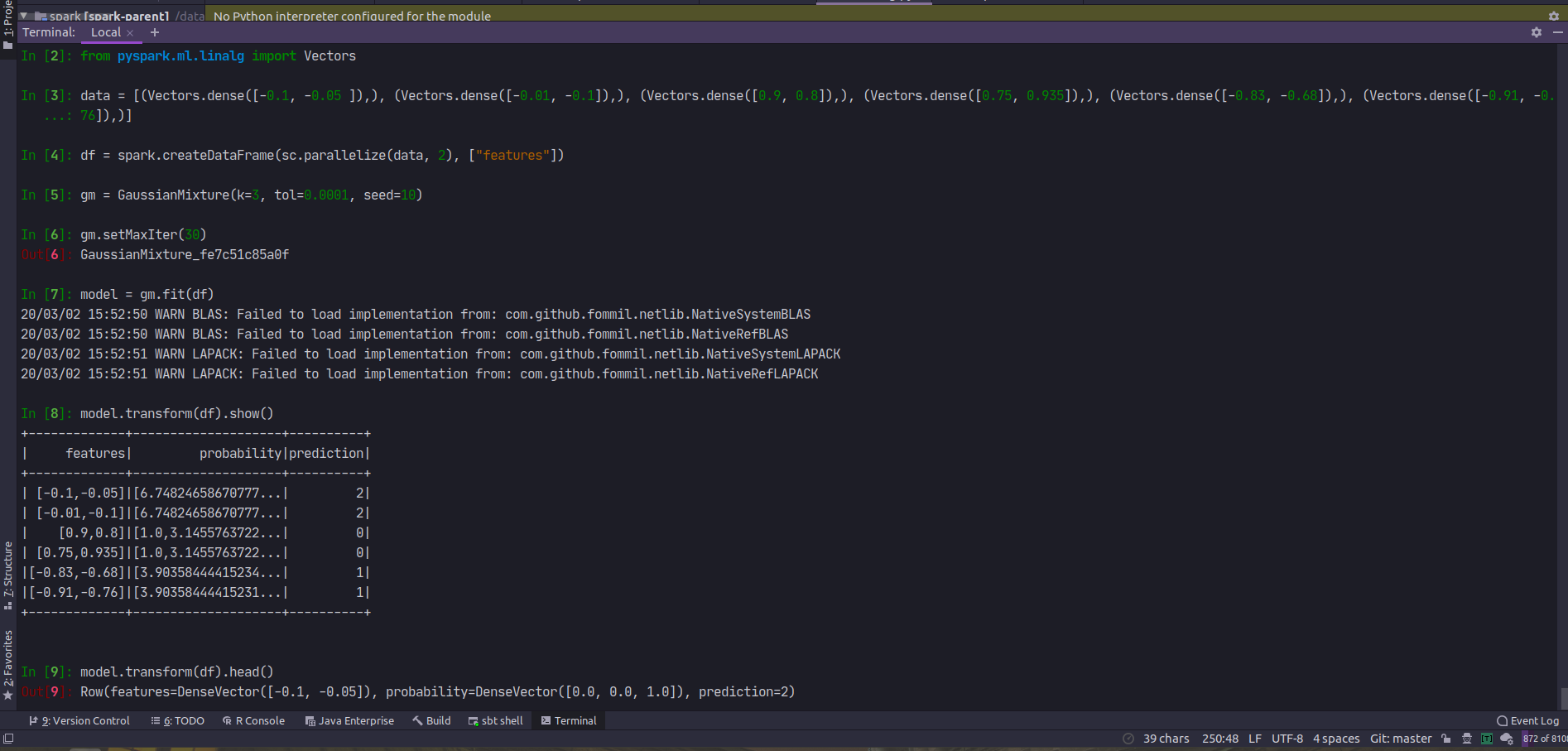 The result in `model.transform(df).show()` are not `DenseVector([0.0, 0.0,