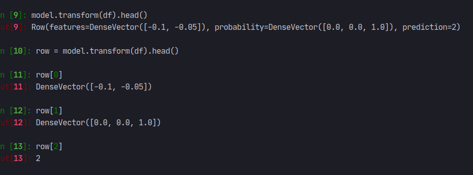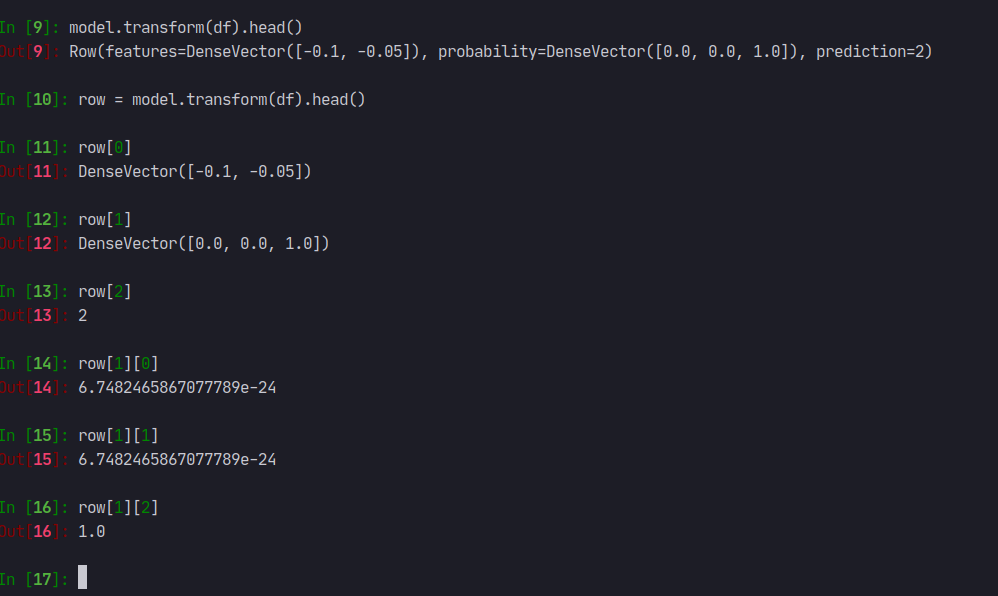 but the `model.transform(df).head()` shows `DenseVector([0.0, 0.0, 1.0])`.
