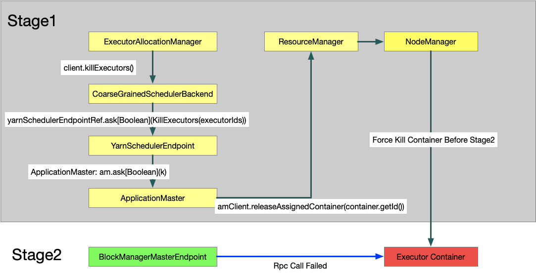 > So I want to clarify, the only issue here is you see a warning log in the log files, correct? No, that's a RPC fail exception. And I think the possible reason is : Phase 1: The AM killed the executor container while BlockManagerMaster has not removed the executor ref. Phase 2: BlockManagerMaster sends an RPC call to BlockManager on the dead executor.  ---------------------------------------------------------------- This is an automated message from the Apache Git Service. To respond to the message, please log on to GitHub and use the URL above to go to the specific comment. For queries about this service, please contact Infrastructure at: [email protected] --------------------------------------------------------------------- To unsubscribe, e-mail: [email protected] For additional commands, e-mail: [email protected]