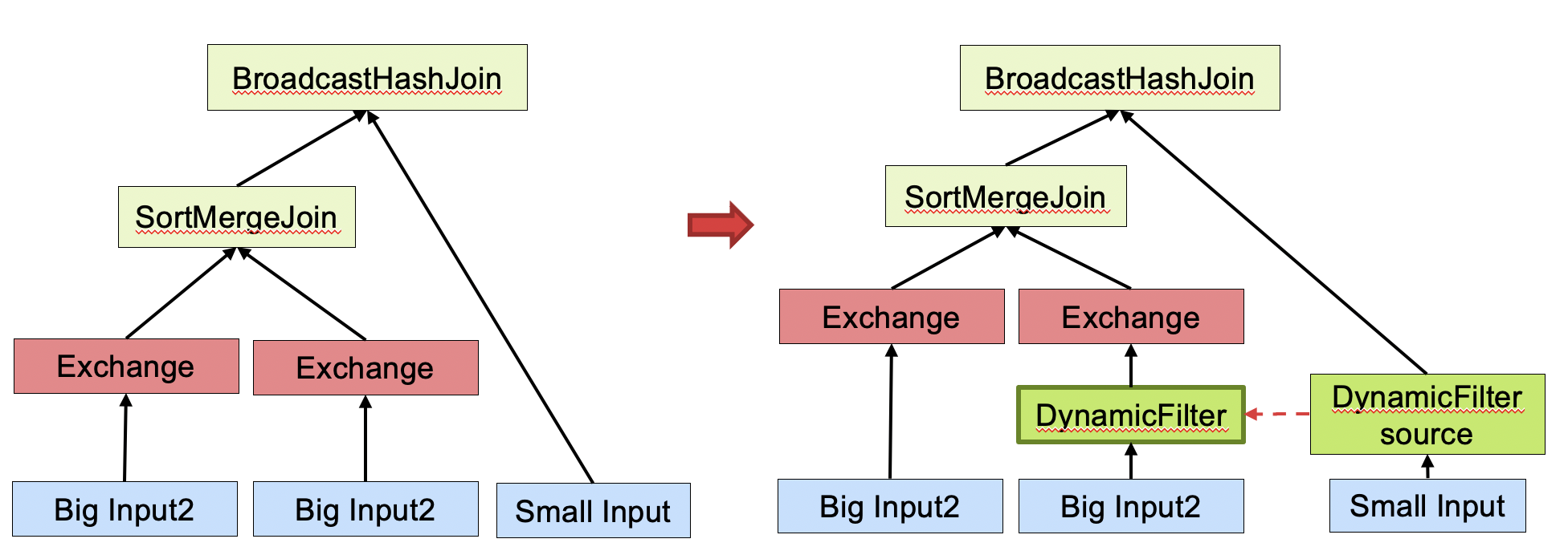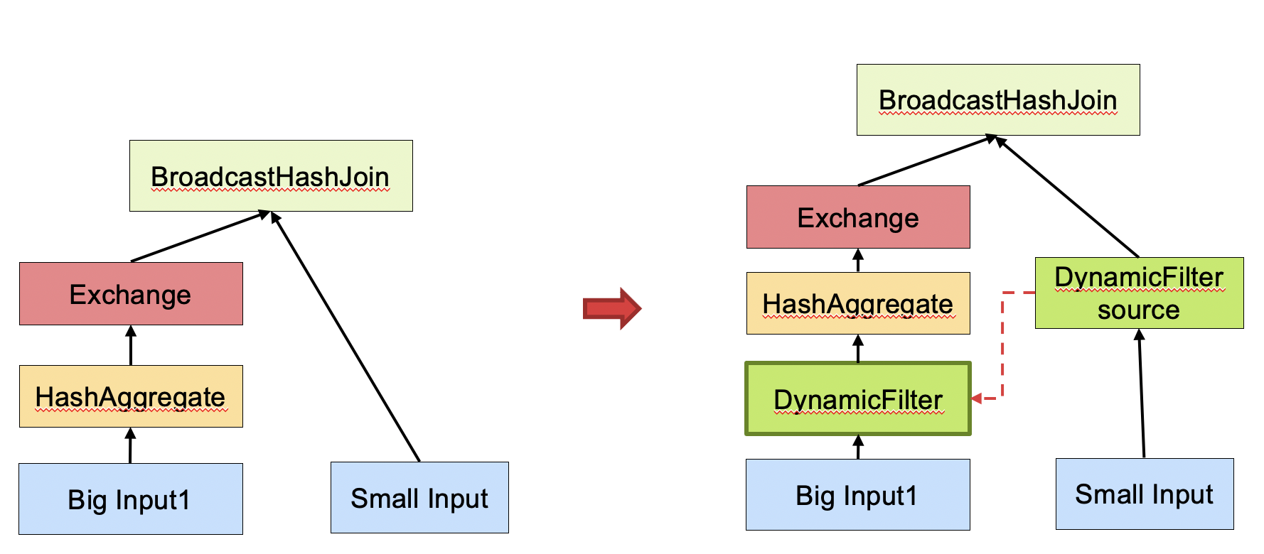 ### What changes were proposed in this pull request? This pr add support dynamic pruning on data column. Dynamic pruning on data column support 2 cases: 1. Pruning on aggregate function to reduce shuffle data:  2. Pruning on sort merge join to reduce shuffle data:  In addition, the dynamic pruning on data column also supports pushing down the dynamic filter to the data source. ### Why are the changes needed? Improve query performance. ### Does this PR introduce _any_ user-facing change? No. ### How was this patch tested? Unit test and performance test: 1. TPC-DS Performance Evaluation SQL | Shuffle stage origin data size | Pruning shuffle stage data size | Shuffle stage origin records | Pruning shuffle stage records | Disable shuffle pruning (second) | Enable shuffle pruning (second) -- | -- | -- | -- | -- | -- | -- q13 | 3.2 GiB | 93.1 MiB | 86,409,332 | 1,480,662 | 13 | 14 q16 | 158.2 GiB | 270.7 MiB | 7,136,969,739 | 10,295,246 | 84 | 36 q24a | 355.6 GiB | 39.7 GiB | 13,428,037,922 | 1,504,810,137 | 660 | 432 q24b | 355.6 GiB | 39.7 GiB | 13,428,037,922 | 1,504,810,137 | 660 | 492 q65 | 37.2 GiB | 37.2 GiB | 2,627,543,089 | 2,627,543,089 | 45 | 45 q72 | 40.9 GiB | 1543.3 MiB | 1,418,327,817 | 47,248,271 | 276 | 38 q80 | 8.3 GiB | 8.2 GiB | 295,853,928 | 292,353,065 | 37 | 36 q85 | 12.8 GiB | 1508.2 MiB | 329,635,219 | 37,337,231 | 16 | 12 q93 | 26.7 GiB | 435.9 MiB | 1,389,592,792 | 20,744,184 | 270 | 258 q94 | 87.6 GiB | 1012.0 MiB | 3,598,433,079 | 34,538,210 | 58 | 27 q95 | 640.5 GiB | 344.6 GiB | 872,596,314 | 793,654,526 | 414 | 402 2. Production Performance Evaluation Before this PR | After this PR -- | --  |  ---------------------------------------------------------------- This is an automated message from the Apache Git Service. To respond to the message, please log on to GitHub and use the URL above to go to the specific comment. For queries about this service, please contact Infrastructure at: [email protected] --------------------------------------------------------------------- To unsubscribe, e-mail: [email protected] For additional commands, e-mail: [email protected]