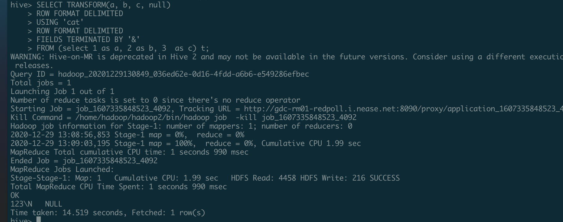 ### What changes were proposed in this pull request? For same SQL ``` SELECT TRANSFORM(a, b, c, null) ROW FORMAT DELIMITED USING 'cat' ROW FORMAT DELIMITED FIELDS TERMINATED BY '&' FROM (select 1 as a, 2 as b, 3 as c) t ``` In hive:  In Spark  We should keep same. Change default ROW FORMAT FIELD DELIMIT to `\u0001` ### Why are the changes needed? Keep same behavior with hive ### Does this PR introduce _any_ user-facing change? No ### How was this patch tested? Added UT ---------------------------------------------------------------- This is an automated message from the Apache Git Service. To respond to the message, please log on to GitHub and use the URL above to go to the specific comment. For queries about this service, please contact Infrastructure at: [email protected] --------------------------------------------------------------------- To unsubscribe, e-mail: [email protected] For additional commands, e-mail: [email protected]