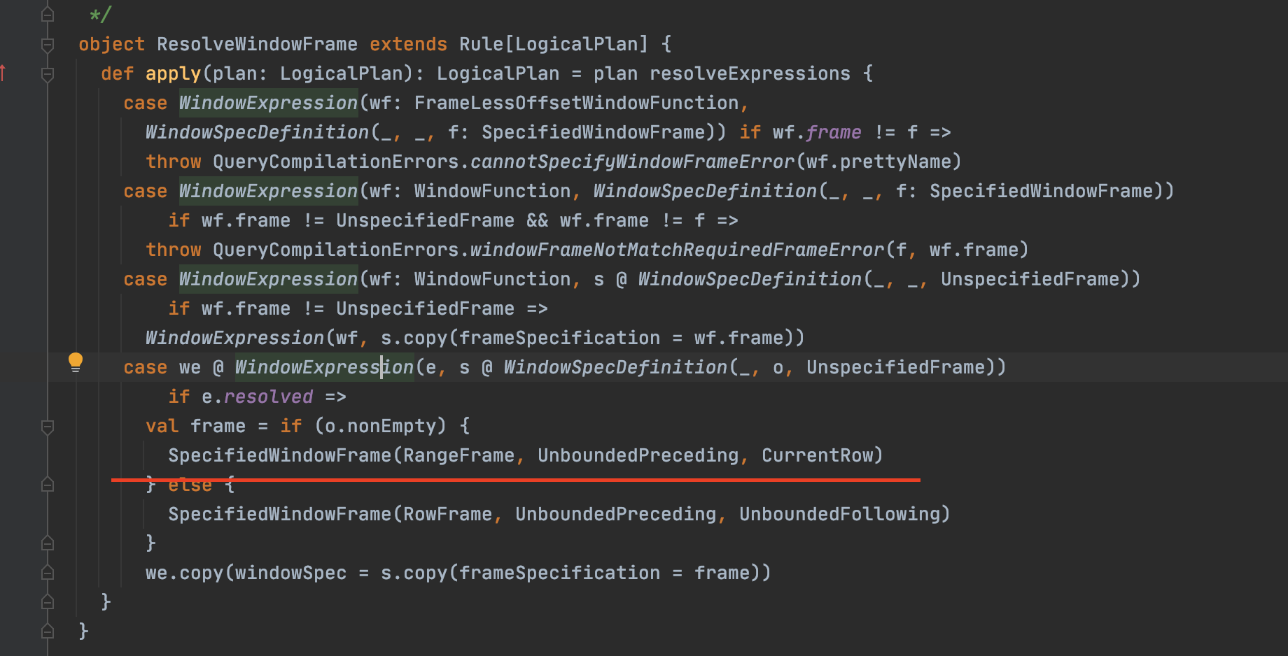 WindowSpecDefinition(_, _, f: SpecifiedWindowFrame)) if wf.frame != f
