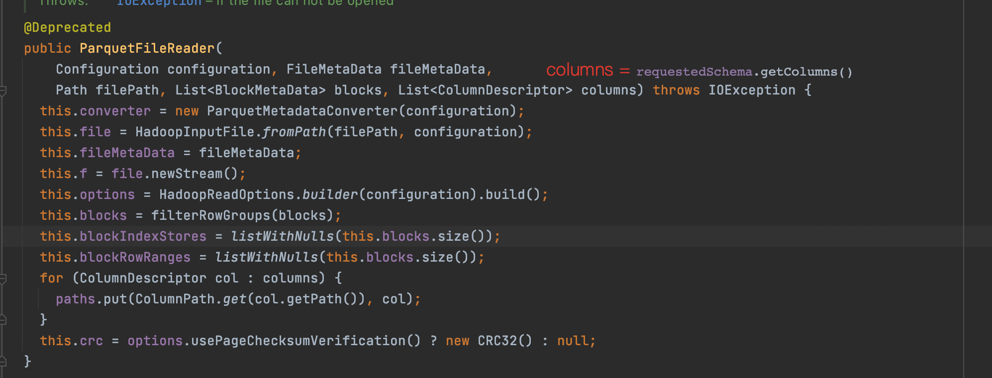 +    this.reader = new ParquetFileReader(HadoopInputFile.fromPath(file,