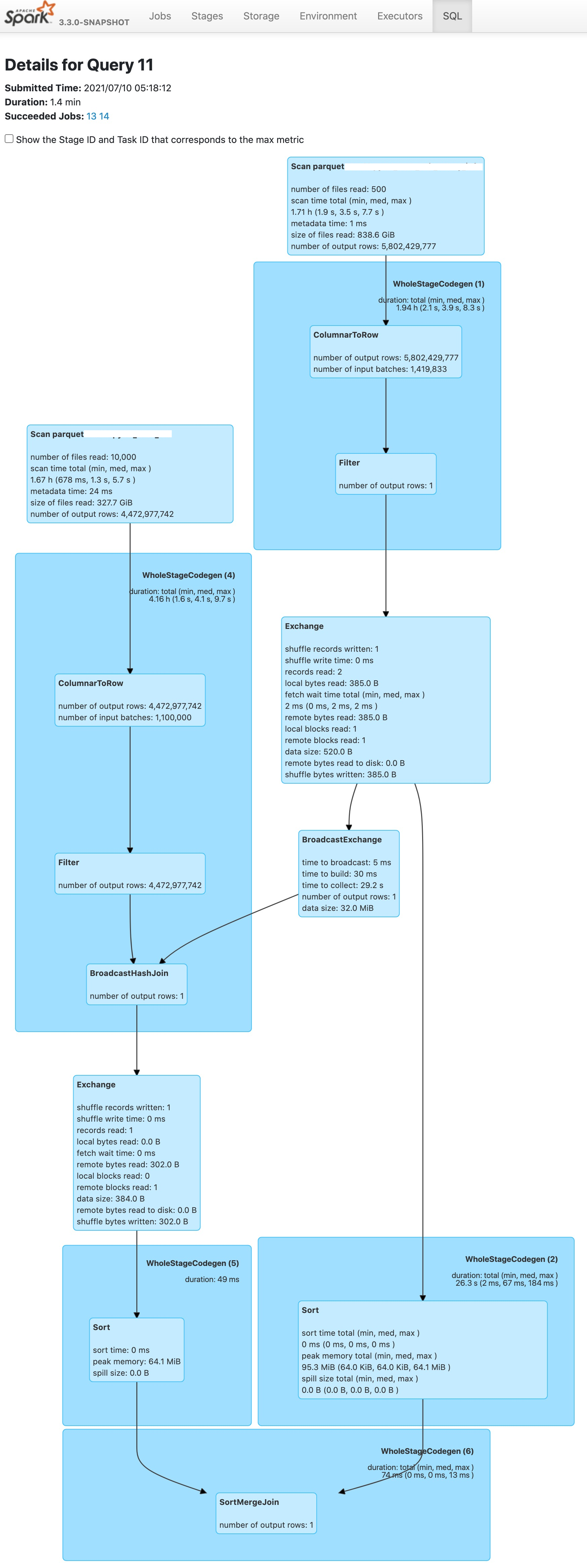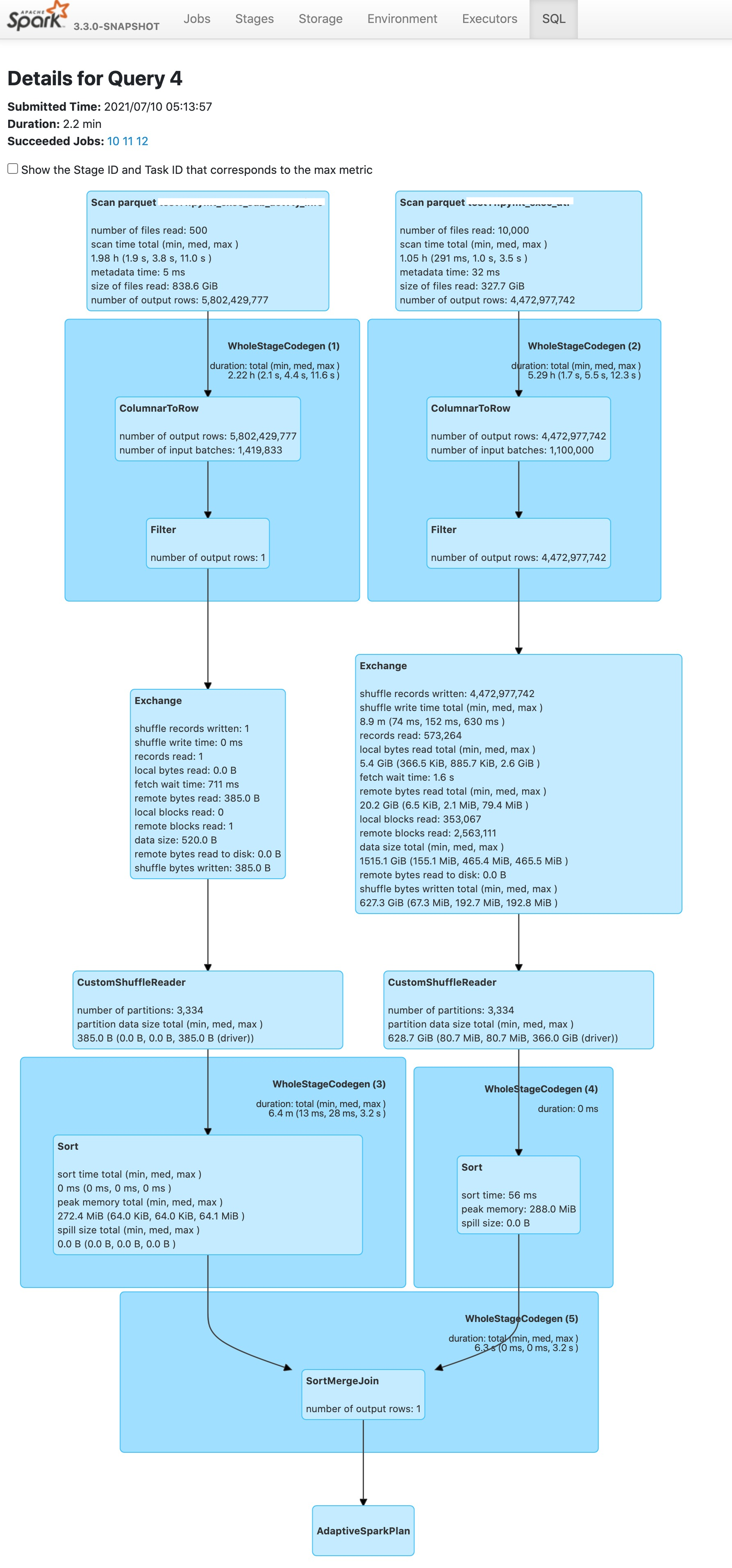 ### What changes were proposed in this pull request? Add a new optimize rule(`BroadcastJoinOuterJoinStreamSide`) to add a BHJ ahead of SMJ for left outer/semi/anti join if stream side can build broadcast and it is much smaller that other side. A real case from our cluster: ```sql SELECT * FROM t1 c LEFT JOIN t2 b ON substring(b.extrnl_rfrnc_key,(instr(b.extrnl_rfrnc_key,'!')+1),char_length(b.extrnl_rfrnc_key))=c.exec_rsrc_ref_id WHERE c.prcsr_trxn_id = 3415882487483039; ``` Before this PR | After this PR -- | --  |  How to disable this rule: ```sql set spark.sql.optimizer.excludedRules=org.apache.spark.sql.catalyst.optimizer.BroadcastJoinOuterJoinStreamSide; ``` ### Why are the changes needed? Improve query performance if left outer/semi/anti join if it's left side is very small and right side is very large. ### Does this PR introduce _any_ user-facing change? No. ### How was this patch tested? Unit test. -- This is an automated message from the Apache Git Service. To respond to the message, please log on to GitHub and use the URL above to go to the specific comment. To unsubscribe, e-mail: [email protected] For queries about this service, please contact Infrastructure at: [email protected] --------------------------------------------------------------------- To unsubscribe, e-mail: [email protected] For additional commands, e-mail: [email protected]