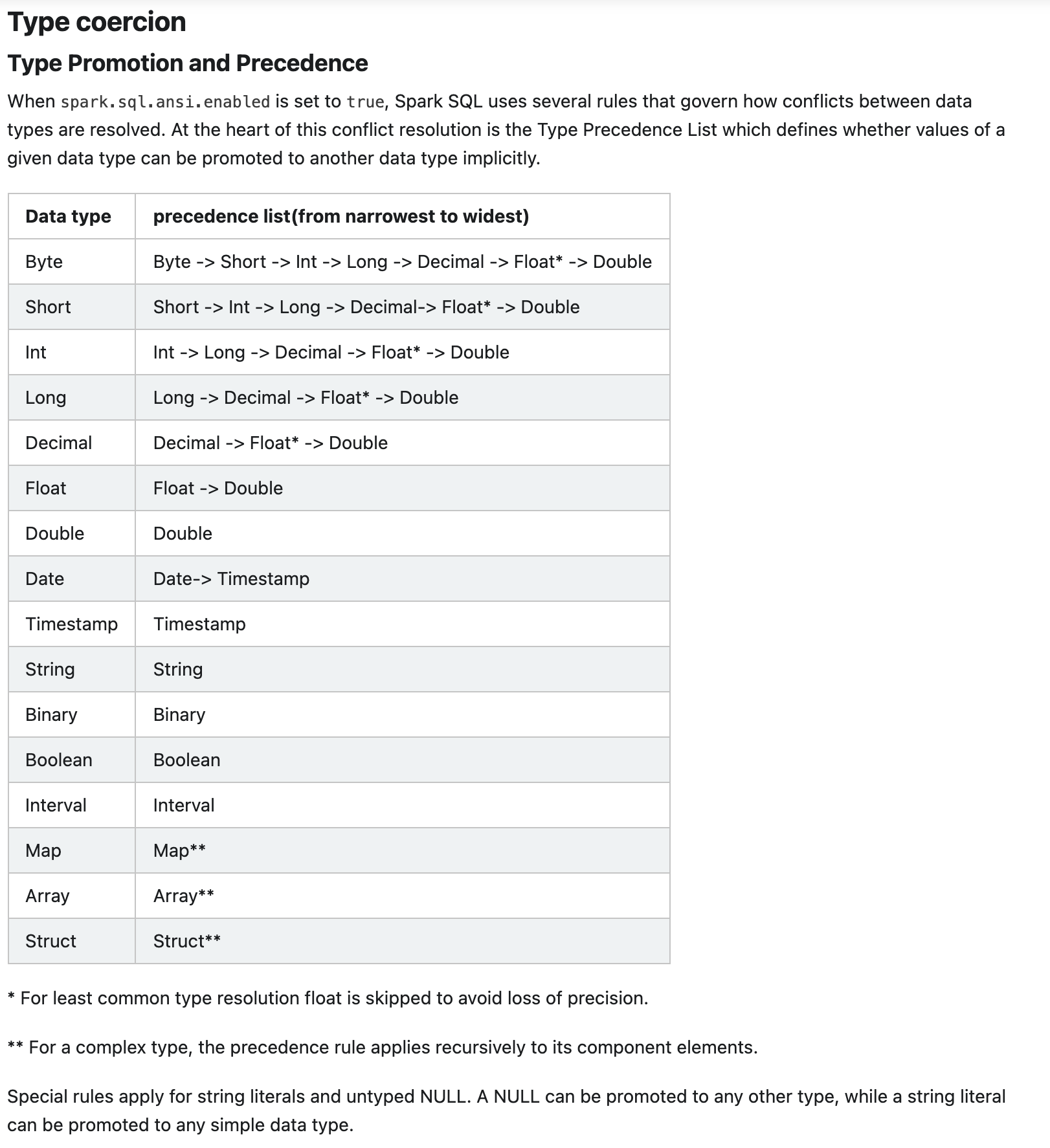 Add documentation for the ANSI implicit cast rules which are introduced from