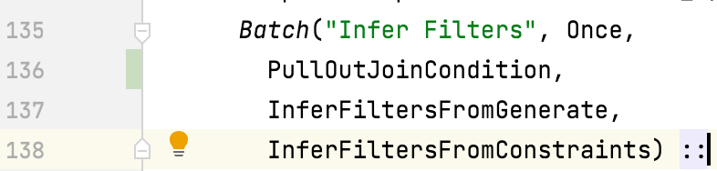 ########## File path: sql/catalyst/src/main/scala/org/apache/spark/sql/catalyst/optimizer/PullOutJoinCondition.scala ########## @@ -0,0 +1,76 @@ +/* + * Licensed to the Apache Software Foundation (ASF) under one or more + * contributor license agreements. See the NOTICE file distributed with + * this work for additional information regarding copyright ownership. + * The ASF licenses this file to You under the Apache License, Version 2.0 + * (the "License"); you may not use this file except in compliance with + * the License. You may obtain a copy of the License at + * + * http://www.apache.org/licenses/LICENSE-2.0 + * + * Unless required by applicable law or agreed to in writing, software + * distributed under the License is distributed on an "AS IS" BASIS, + * WITHOUT WARRANTIES OR CONDITIONS OF ANY KIND, either express or implied. + * See the License for the specific language governing permissions and + * limitations under the License. + */ + +package org.apache.spark.sql.catalyst.optimizer + +import org.apache.spark.sql.catalyst.expressions.{Alias, Expression, PredicateHelper} +import org.apache.spark.sql.catalyst.plans.logical.{Join, LogicalPlan, Project} +import org.apache.spark.sql.catalyst.rules.Rule +import org.apache.spark.sql.catalyst.trees.TreePattern.JOIN + +/** + * This rule ensures that [[Join]] condition doesn't contain complex expressions in the + * optimization phase. + * + * Complex condition expressions are pulled out to a [[Project]] node under [[Join]] and are + * referenced in join condition. + * + * {{{ + * SELECT * FROM t1 JOIN t2 ON t1.a + 10 = t2.x ==> + * Project [a#0, b#1, x#2, y#3] + * +- Join Inner, ((spark_catalog.default.t1.a + 10)#8 = x#2) + * :- Project [a#0, b#1, (a#0 + 10) AS (spark_catalog.default.t1.a + 10)#8] + * : +- Filter isnotnull((a#0 + 10)) + * : +- Relation default.t1[a#0,b#1] parquet + * +- Filter isnotnull(x#2) + * +- Relation default.t2[x#2,y#3] parquet + * }}} + */ +object PullOutJoinCondition extends Rule[LogicalPlan] + with JoinSelectionHelper with PredicateHelper { + + def apply(plan: LogicalPlan): LogicalPlan = plan.transformWithPruning(_.containsPattern(JOIN)) { + case j @ Join(left, right, _, Some(condition), _) + if j.resolved && !canPlanAsBroadcastHashJoin(j, conf) => Review comment: Can we put it in `Infer Filters`? This can infer more filters mentioned in https://github.com/apache/spark/pull/28642: https://github.com/apache/spark/blob/7f6edf8118b39a5b1854c2d0a1fb9bbbb3c11f86/sql/core/src/test/scala/org/apache/spark/sql/SQLQuerySuite.scala#L4231-L4254  -- This is an automated message from the Apache Git Service. To respond to the message, please log on to GitHub and use the URL above to go to the specific comment. To unsubscribe, e-mail: [email protected] For queries about this service, please contact Infrastructure at: [email protected] --------------------------------------------------------------------- To unsubscribe, e-mail: [email protected] For additional commands, e-mail: [email protected]