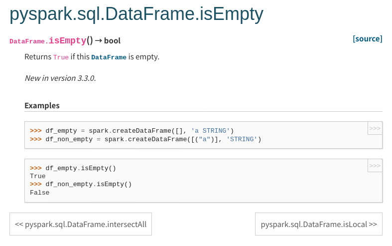 + >>> df_non_empty = spark.createDataFrame([("a")], 'STRING')