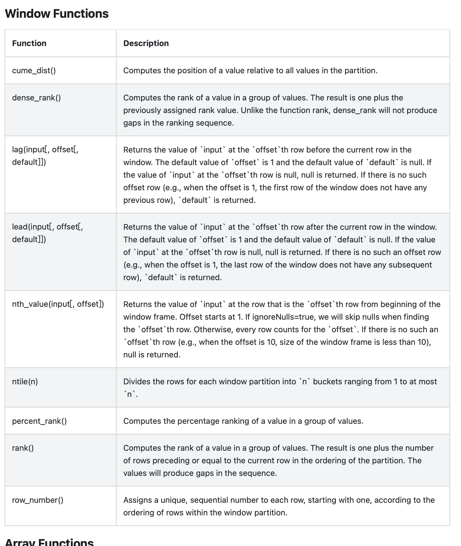 ### What changes were proposed in this pull request? Currently, Spark SQL docs display the window functions without examples.  In fact, Mkdocs also generates the doc `generated-window-funcs-examples.html` This PR just updates the `sql-ref-functions-builtin.md` ### Why are the changes needed? Let SQL docs display the examples of window functions. ### Does this PR introduce _any_ user-facing change? 'No'. Just update docs. ### How was this patch tested? Manual tests. -- This is an automated message from the Apache Git Service. To respond to the message, please log on to GitHub and use the URL above to go to the specific comment. To unsubscribe, e-mail: [email protected] For queries about this service, please contact Infrastructure at: [email protected] --------------------------------------------------------------------- To unsubscribe, e-mail: [email protected] For additional commands, e-mail: [email protected]