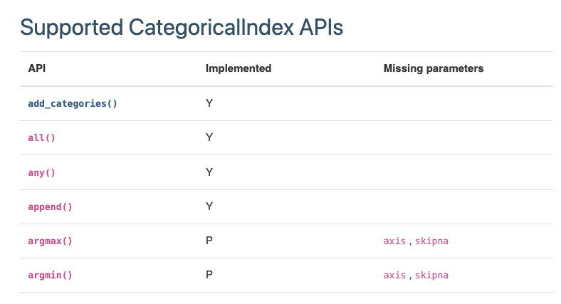 ########## python/pyspark/pandas/supported_api_gen.py: ########## @@ -0,0 +1,377 @@ +# +# Licensed to the Apache Software Foundation (ASF) under one or more +# contributor license agreements. See the NOTICE file distributed with +# this work for additional information regarding copyright ownership. +# The ASF licenses this file to You under the Apache License, Version 2.0 +# (the "License"); you may not use this file except in compliance with +# the License. You may obtain a copy of the License at +# +# http://www.apache.org/licenses/LICENSE-2.0 +# +# Unless required by applicable law or agreed to in writing, software +# distributed under the License is distributed on an "AS IS" BASIS, +# WITHOUT WARRANTIES OR CONDITIONS OF ANY KIND, either express or implied. +# See the License for the specific language governing permissions and +# limitations under the License. +# + +""" +Generate 'Supported pandas APIs' documentation file +""" +import warnings +from distutils.version import LooseVersion +from enum import Enum, unique +from inspect import getmembers, isclass, isfunction, signature +from typing import Any, Callable, Dict, List, NamedTuple, Set, TextIO, Tuple + +import pyspark.pandas as ps +import pyspark.pandas.groupby as psg +import pyspark.pandas.window as psw + +import pandas as pd +import pandas.core.groupby as pdg +import pandas.core.window as pdw + +MAX_MISSING_PARAMS_SIZE = 5 +COMMON_PARAMETER_SET = { + "kwargs", + "args", + "cls", +} # These are not counted as missing parameters. +MODULE_GROUP_MATCH = [(pd, ps), (pdw, psw), (pdg, psg)] + +RST_HEADER = """ +===================== +Supported pandas APIs +===================== + +.. currentmodule:: pyspark.pandas + +The following table shows the pandas APIs that implemented or non-implemented from pandas API on +Spark. + +Some pandas APIs do not implement full parameters, so the third column shows missing parameters for +each API. + +'Y' in the second column means it's implemented including its whole parameter. +'N' means it's not implemented yet. +'P' means it's partially implemented with the missing of some parameters. + +If there is non-implemented pandas API or parameter you want, you can create an `Apache Spark +JIRA <https://issues.apache.org/jira/projects/SPARK/summary>`__ to request or to contribute by your +own. + +The API list is updated based on the `latest pandas official API +reference <https://pandas.pydata.org/docs/reference/index.html#>`__. + +All implemented APIs listed here are distributed except the ones that requires the local +computation by design. For example, `DataFrame.to_numpy() <https://spark.apache.org +/docs/latest/api/python/reference/pyspark.pandas/api/pyspark.pandas.DataFrame. +to_numpy.html>`__ requires to collect the data to the driver side. + +""" + + +@unique +class Implemented(Enum): + IMPLEMENTED = "Y" + NOT_IMPLEMENTED = "N" + PARTIALLY_IMPLEMENTED = "P" + + +class SupportedStatus(NamedTuple): + """ + Defines a supported status for a specific pandas API + """ + + implemented: str + missing: str + + +def generate_supported_api(output_rst_file_path: str) -> None: + """ + Generate supported APIs status dictionary. + Parameters + ---------- + output_rst_file_path : str + The path to the document file in RST format. + + Write supported APIs documentation. + """ + if LooseVersion(pd.__version__) < LooseVersion("1.4.0"): + warnings.warn( + "Warning: Latest version of pandas(>=1.4.0) is required to generate the documentation; " + + "however, your version was %s" % pd.__version__, + UserWarning, + ) + + all_supported_status: Dict[Tuple[str, str], Dict[str, SupportedStatus]] = {} + for pd_module_group, ps_module_group in MODULE_GROUP_MATCH: + pd_modules = _get_pd_modules(pd_module_group) + _update_all_supported_status( + all_supported_status, pd_modules, pd_module_group, ps_module_group + ) + _write_rst(output_rst_file_path, all_supported_status) + + +def _create_supported_by_module( + module_name: str, pd_module_group: Any, ps_module_group: Any +) -> Dict[str, SupportedStatus]: + """ + Retrieves supported status of pandas module + + Parameters + ---------- + module_name : str + Class name that exists in the path of the module. + pd_module_group : Any + Specific path of importable pandas module. + ps_module_group: Any + Specific path of importable pyspark.pandas module. + """ + pd_module = getattr(pd_module_group, module_name) if module_name else pd_module_group + try: + ps_module = getattr(ps_module_group, module_name) if module_name else ps_module_group + except AttributeError: + # module not implemented + return {} + + pd_funcs = dict([m for m in getmembers(pd_module, isfunction) if not m[0].startswith("_")]) + if not pd_funcs: + return {} + + ps_funcs = dict([m for m in getmembers(ps_module, isfunction) if not m[0].startswith("_")]) + + return _organize_by_implementation_status( + module_name, pd_funcs, ps_funcs, pd_module_group, ps_module_group + ) + + +def _organize_by_implementation_status( + module_name: str, + pd_funcs: Dict[str, Callable], + ps_funcs: Dict[str, Callable], + pd_module_group: Any, + ps_module_group: Any, +) -> Dict[str, SupportedStatus]: + """ + Check the implementation status and parameters of both modules. + + Parmeters + --------- + module_name : str + Class name that exists in the path of the module. + pd_funcs: Dict[str, Callable] + function name and function object mapping of pandas module. + ps_funcs: Dict[str, Callable] + function name and function object mapping of pyspark.pandas module. + pd_module_group : Any + Specific path of importable pandas module. + ps_module_group: Any + Specific path of importable pyspark.pandas module. + """ + pd_dict = {} + for pd_func_name, pd_func in pd_funcs.items(): + ps_func = ps_funcs.get(pd_func_name) + if ps_func: + missing_set = ( + set(signature(pd_func).parameters) + - set(signature(ps_func).parameters) + - COMMON_PARAMETER_SET + ) + if missing_set: + # partially implemented + pd_dict[pd_func_name] = SupportedStatus( + implemented=