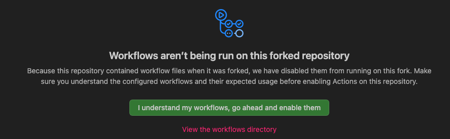 it should be a matter of enabling Github Actions in your forked repository. Do you see something like this if you click through to your test runs?  -- This is an automated message from the Apache Git Service. To respond to the message, please log on to GitHub and use the URL above to go to the specific comment. To unsubscribe, e-mail: [email protected] For queries about this service, please contact Infrastructure at: [email protected] --------------------------------------------------------------------- To unsubscribe, e-mail: [email protected] For additional commands, e-mail: [email protected]
