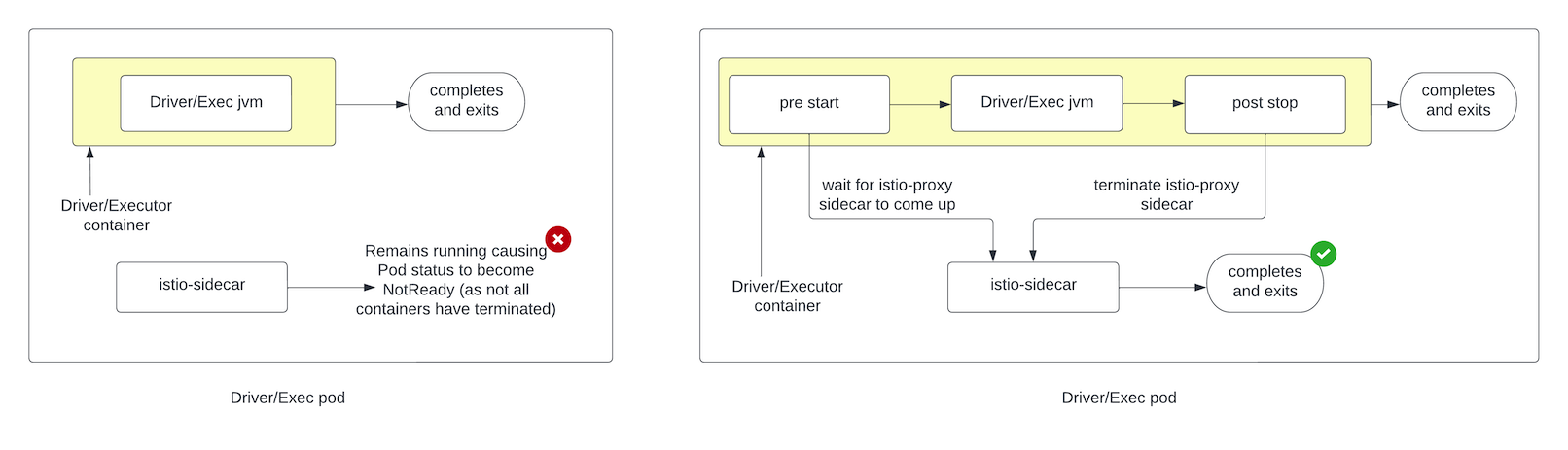 3. Unlike the Istio sidecar, driver/executor containers in the pod can