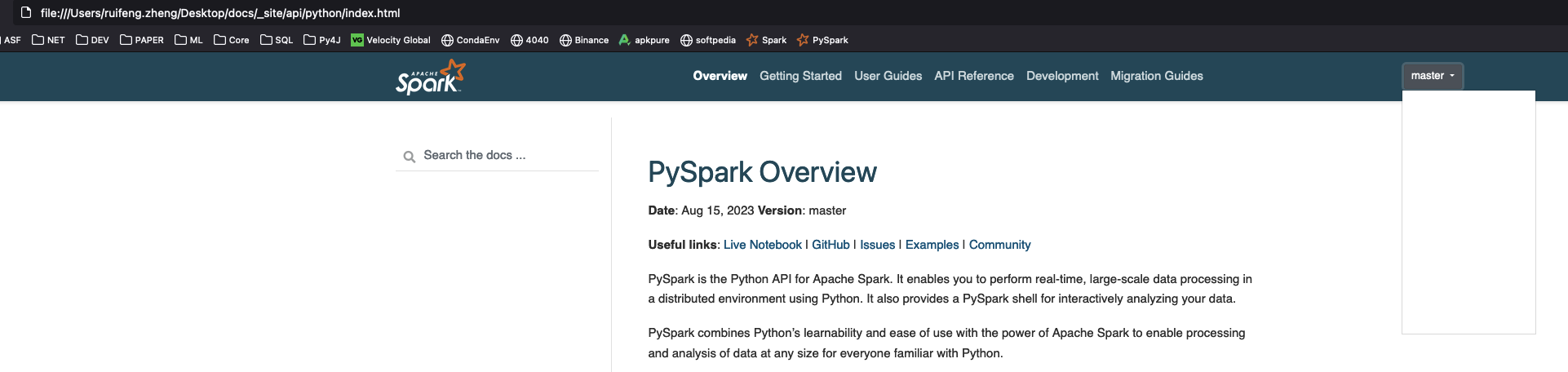 > hi @panbingkun if we see the built doc [here](https://github.com/panbingkun/spark/actions/runs/5863166256), > >  > > the drop down is like following, is this expected? > >  @gengliangwang Due to access issues with Ajax's cross origin, we need to open it locally in this way: Open - n - a/Applications/Google Chrome. app/Content/MacOS/Google Chrome -- args -- user data dir="/tmp/chrome_dev_test" -- disable web security 😄 -- This is an automated message from the Apache Git Service. To respond to the message, please log on to GitHub and use the URL above to go to the specific comment. To unsubscribe, e-mail: [email protected] For queries about this service, please contact Infrastructure at: [email protected] --------------------------------------------------------------------- To unsubscribe, e-mail: [email protected] For additional commands, e-mail: [email protected]