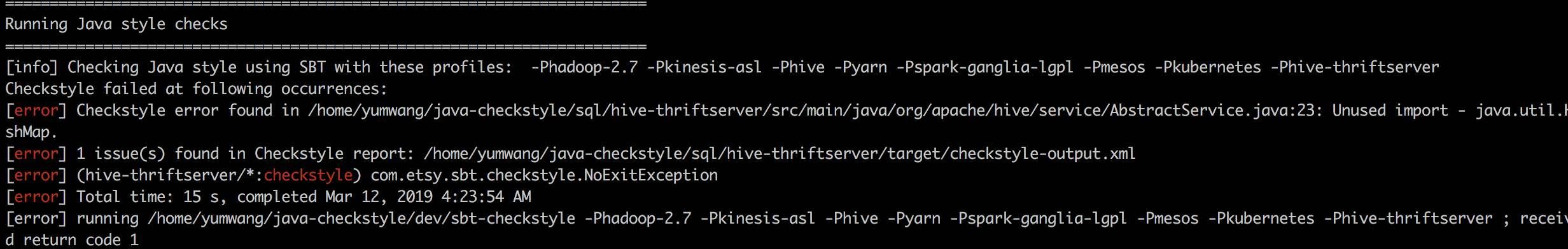 run_cmd([os.path.join(SPARK_HOME, "dev", "sbt-checkstyle"), profiles])