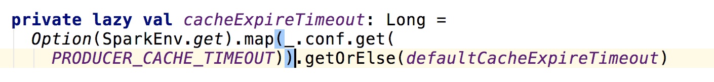 + Option(SparkEnv.get).map(_.conf.get(PRODUCER_CACHE_TIMEOUT)
