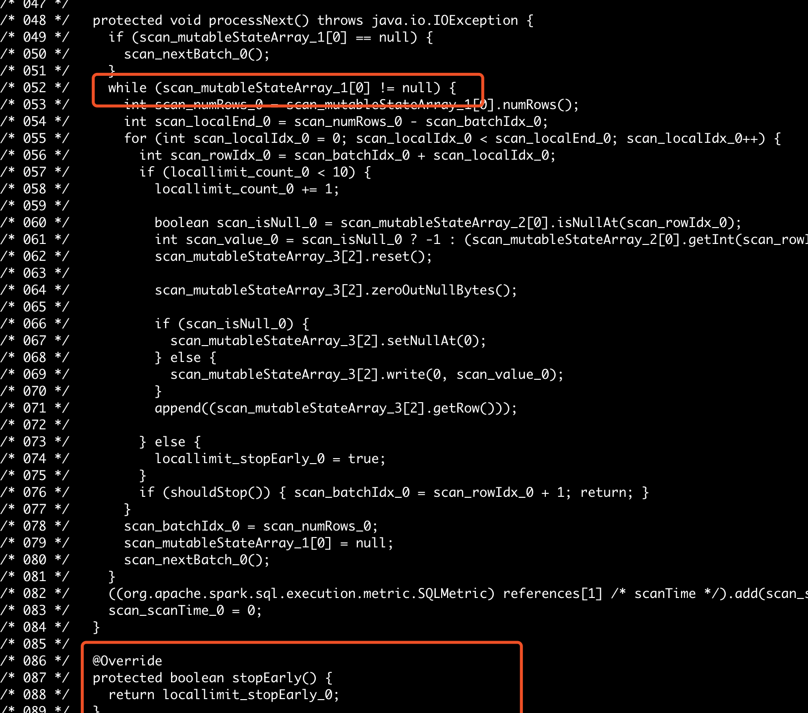 WangGuangxin opened a new pull request #24660: [SPARK-27789]Use stopEarly in codegen of ColumnarBatchScan URL: https://github.com/apache/spark/pull/24660 ## What changes were proposed in this pull request? Suppose that we have a hive table created like this ```create table parquet_test (id int) using parquet```, and our query sql is `select id from parquet_test limit 10`. With `spark.sql.hive.convertMetastoreParquet` set to false, the sql execution will go into `InputAdapter`, in its codegen, it can use `stopEarly` to accelerate local limit. But if we set `spark.sql.hive.convertMetastoreParquet` to true, the sql exectuion will go into `ColumnarBatchScan`, which didn't optimize local limit. In this patch, We use `stopEarly` in `ColumnarBatchScan` as well to accelerate local limit. ## How was this patch tested? Test manually by codegen. For sql `select id from parquet_test limit 10`, the code generated before patch  the code generated after patch