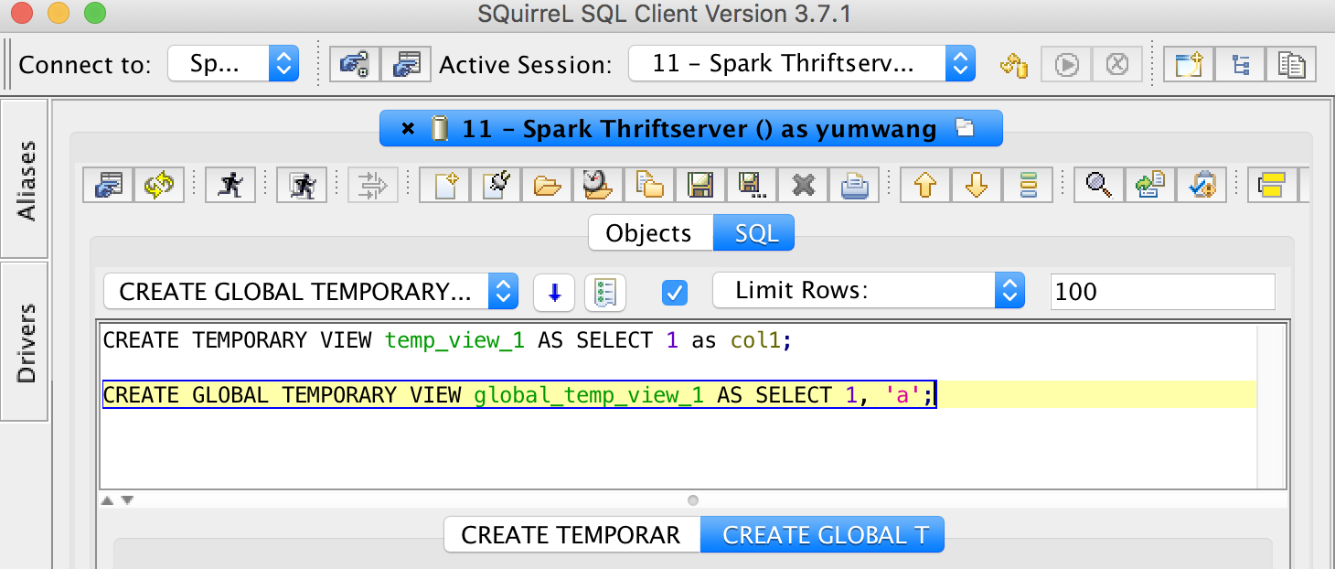 - "CREATE VIEW view1 AS SELECT * FROM table2").foreach(statement.execute)