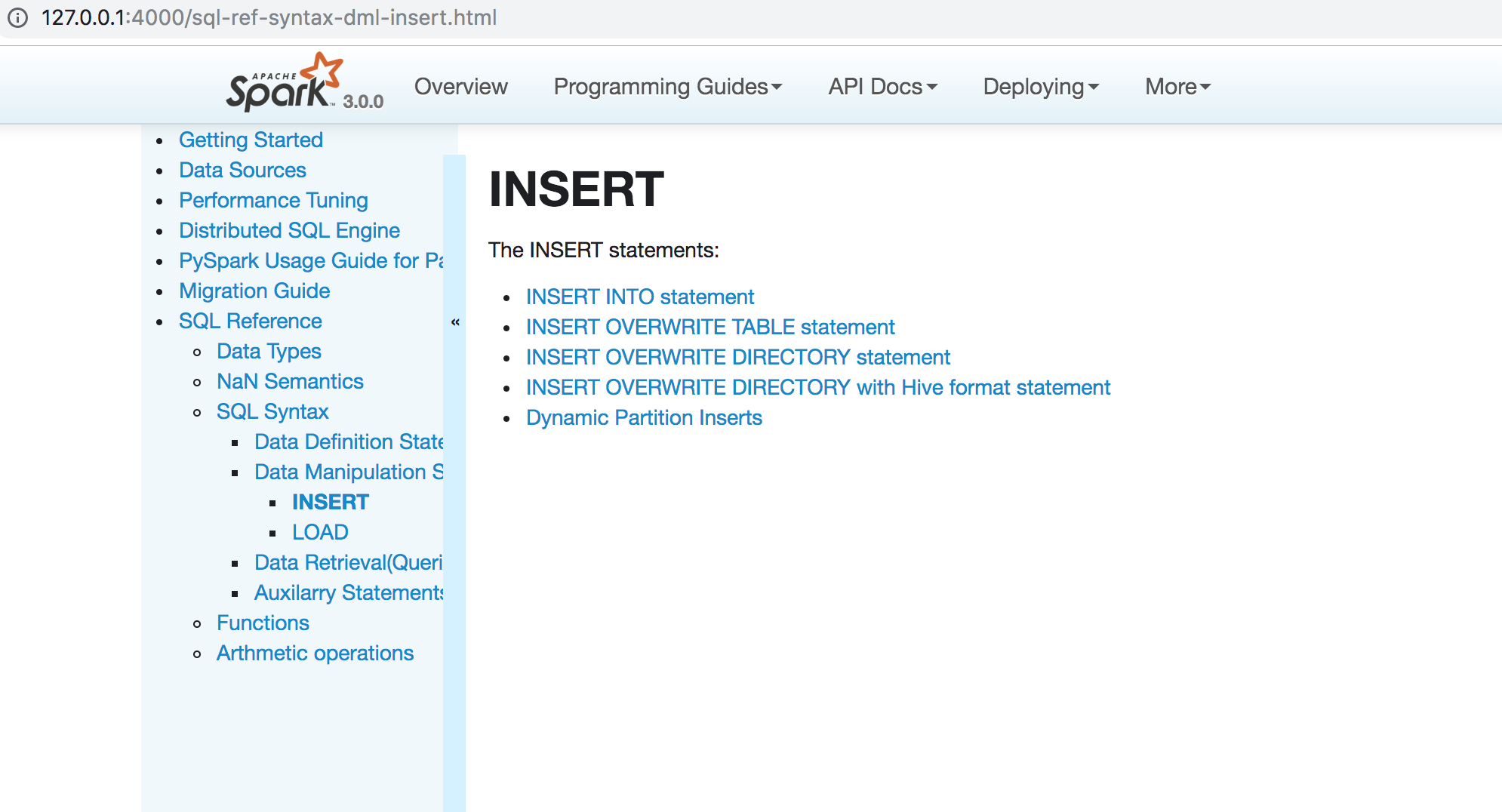 huaxingao commented on issue #25525: [SPARK-28786][DOC][SQL]Document INSERT statement in SQL Reference URL: https://github.com/apache/spark/pull/25525#issuecomment-523554706 [](url)