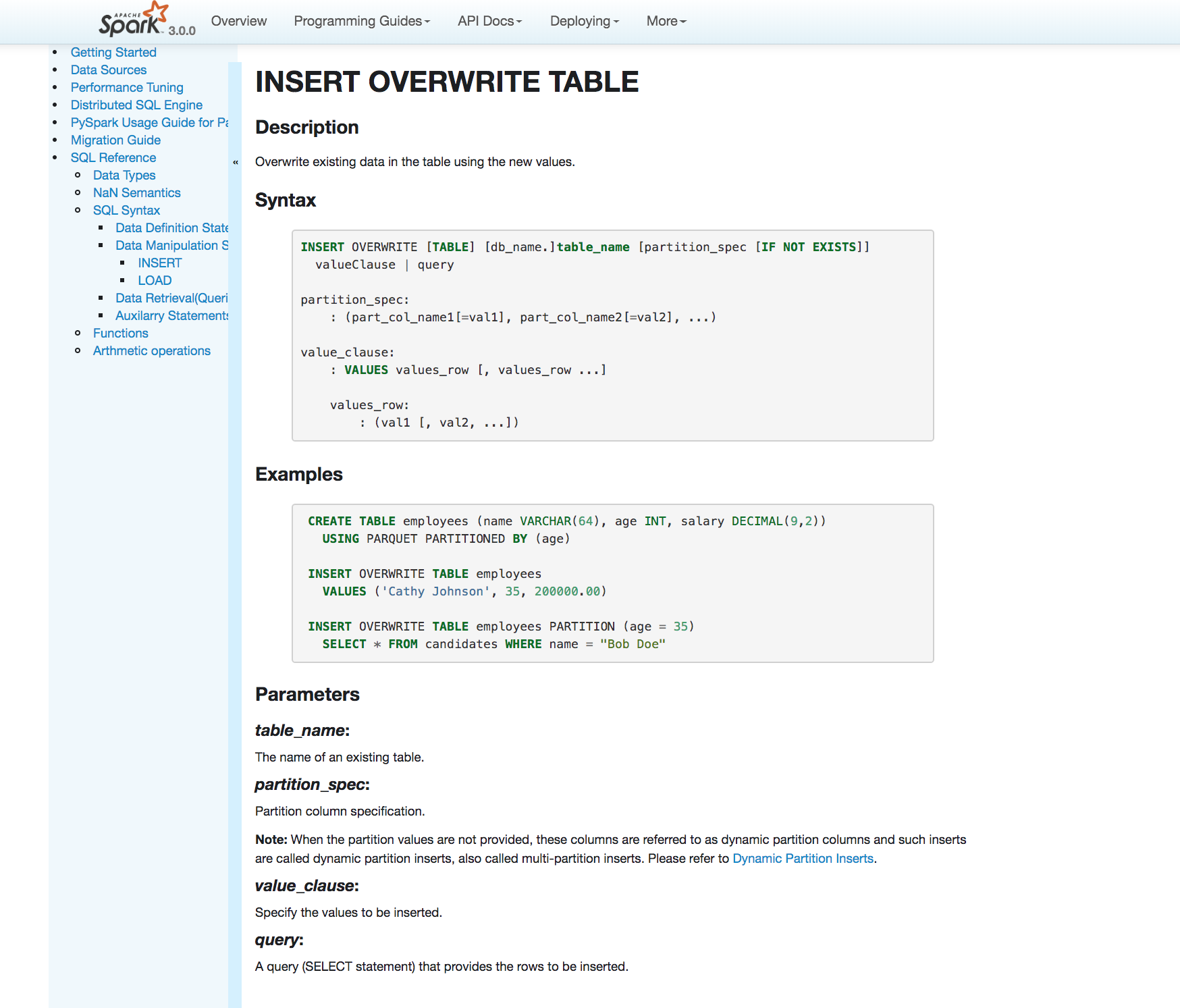 huaxingao commented on issue #25525: [SPARK-28786][DOC][SQL]Document INSERT statement in SQL Reference URL: https://github.com/apache/spark/pull/25525#issuecomment-523555927