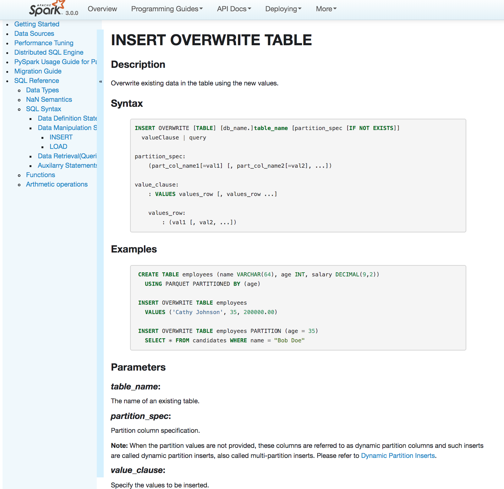 huaxingao edited a comment on issue #25525: [SPARK-28786][DOC][SQL]Document INSERT statement in SQL Reference URL: https://github.com/apache/spark/pull/25525#issuecomment-523555927