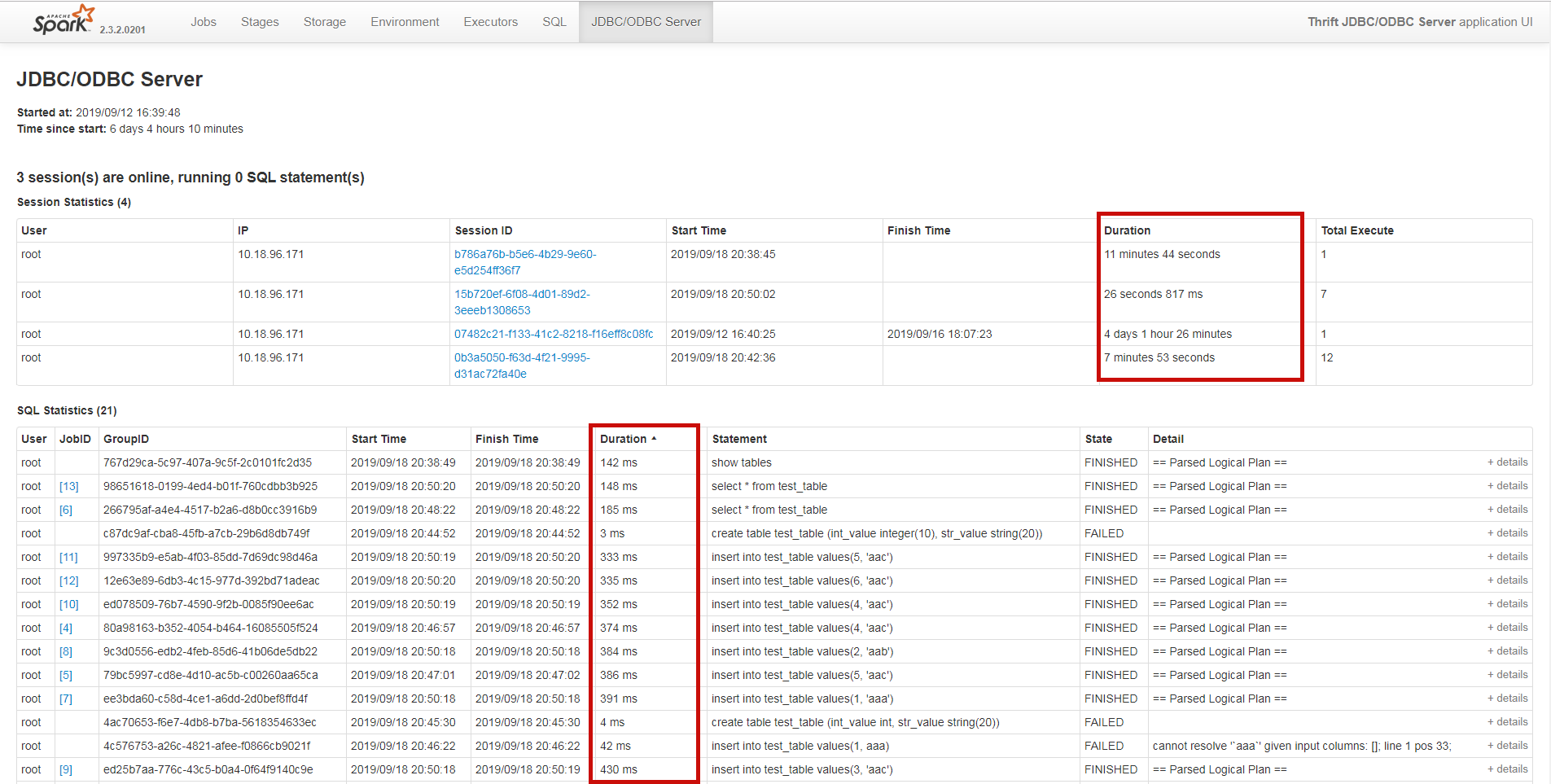 amanomer opened a new pull request #25855: [SPARK-29053][WEBUI] Spark UI JDBC/ODBC Server tab sorting is not working on Duration column URL: https://github.com/apache/spark/pull/25855 ### What changes were proposed in this pull request? Setting custom sort key for duration column. ### Why are the changes needed? Sorting on duration columns consider time as a string after converting into readable form which is the reason for wrong sort results as mentioned in [SPARK-29053](https://issues.apache.org/jira/browse/SPARK-29053). ### Does this PR introduce any user-facing change? No ### How was this patch tested? Test manually. Screenshots are attached. **Before**:  **After**: