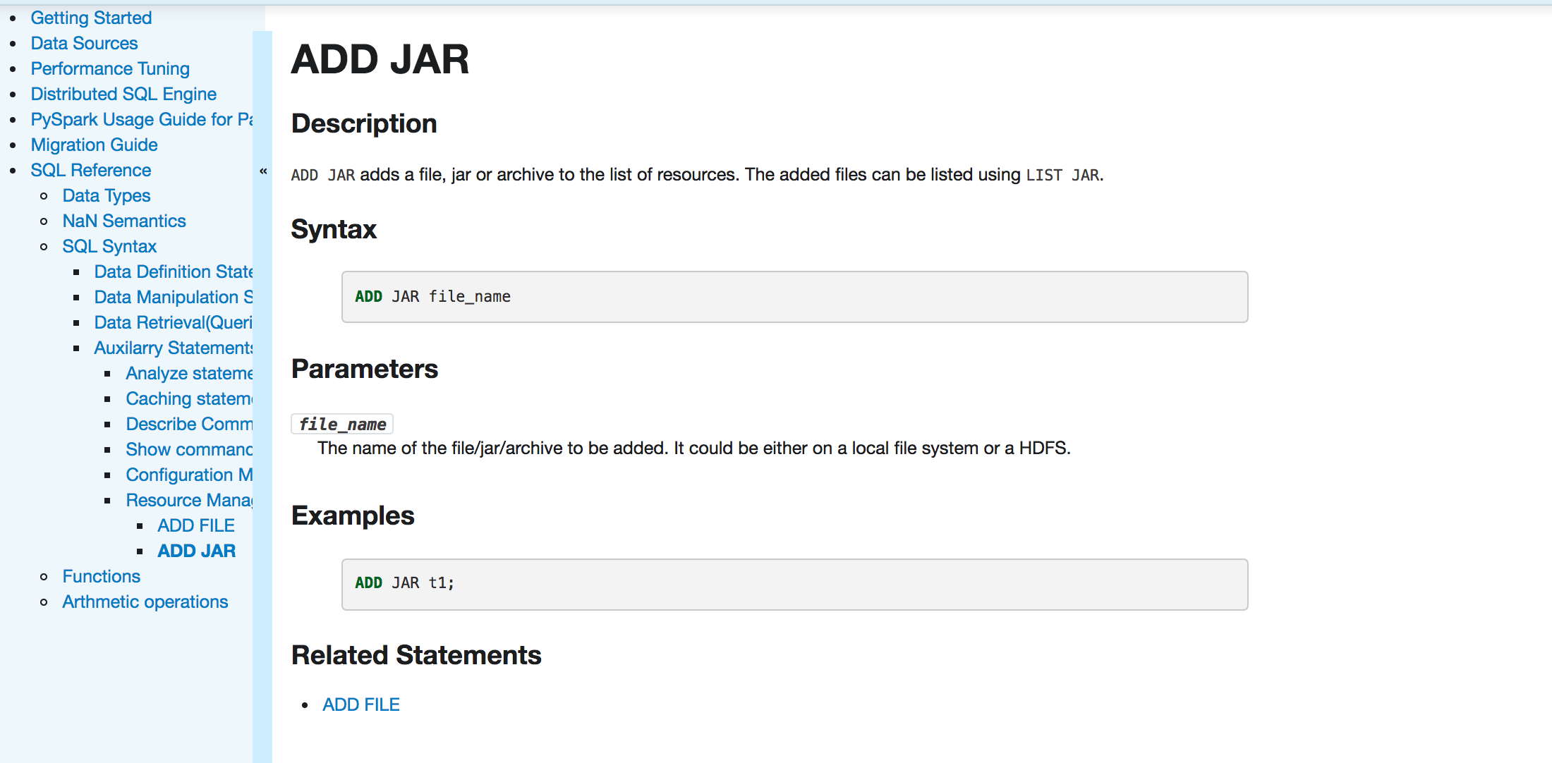 huaxingao opened a new pull request #25895: [SPARK-28816][DOC][SQL] Document ADD JAR statement in SQL Reference URL: https://github.com/apache/spark/pull/25895 ### What changes were proposed in this pull request? document ADD JAR statement in SQL Reference ### Why are the changes needed? To complete SQL reference ### Does this PR introduce any user-facing change? yes after change:  ### How was this patch tested? Tested using jykyll build --serve