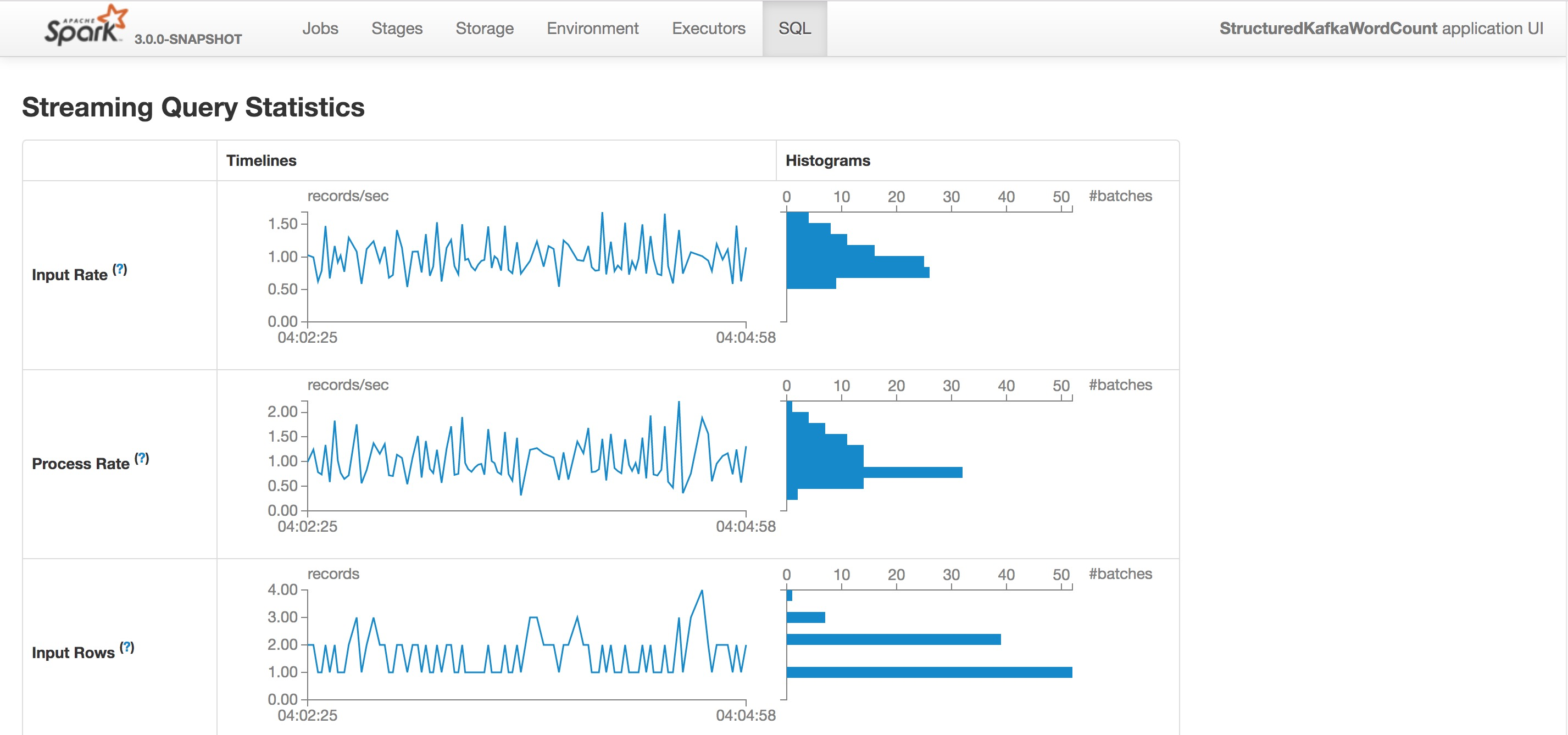 uncleGen opened a new pull request #26201: [SPARK-29543][SS][UI] Init structured streaming ui URL: https://github.com/apache/spark/pull/26201 ### What changes were proposed in this pull request? - Add two pages - "/sql/streaming": Streaming Query Page, providing some aggregate information for running/complete streaming queries. - "/sql/streaming/statistics": Streaming Query Statistics Page, providing detailed information for streaming query, including `Input Rate`, `Process Rate`, `Input Rows`, `Batch Duration` and `Operation Duration` - Add two new metric `totalInputRecords` and `batchDuration` - Add two html resource files: `streaming-page.css` and `streaming-page.js`     ### Why are the changes needed? It helps users to better monitor Structured Streaming job. ### Does this PR introduce any user-facing change? No ### How was this patch tested? Existing UT and manual test