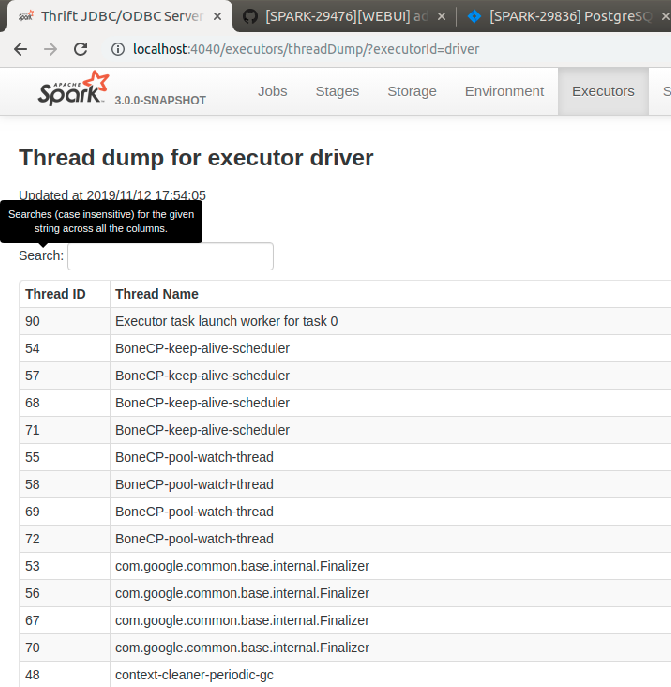 PavithraRamachandran commented on issue #26386: [SPARK-29476][WEBUI] add tooltip for Thread URL: https://github.com/apache/spark/pull/26386#issuecomment-552874470 @srowen I have added tooltip only for locks . I have added tooltip for search too. What is your suggestion on the search tooltip?