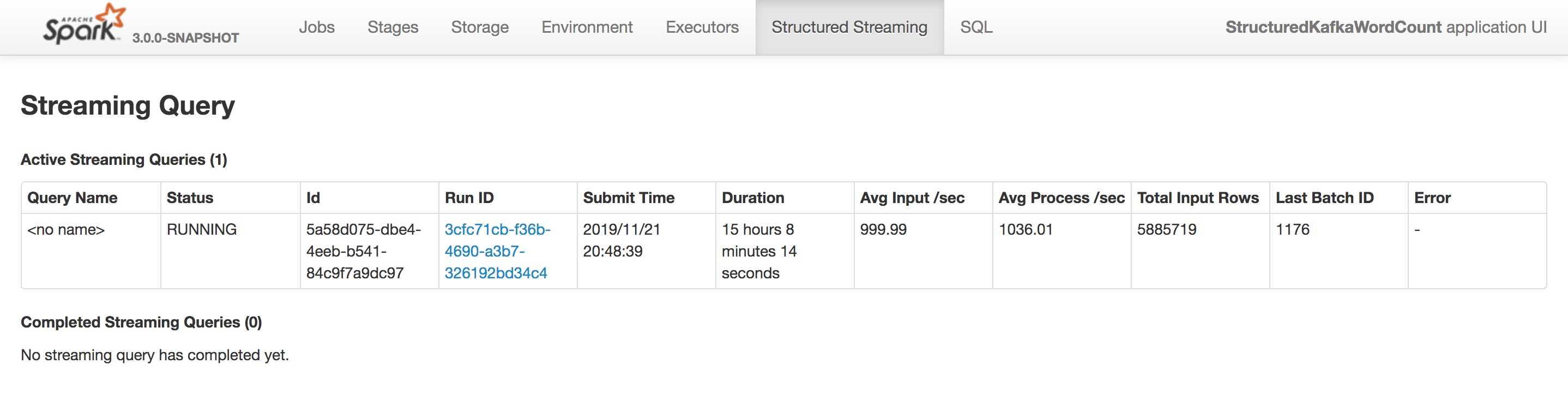 uncleGen edited a comment on issue #26201: [SPARK-29543][SS][UI] Init structured streaming ui URL: https://github.com/apache/spark/pull/26201#issuecomment-557377114 Thanks for your code review. @dongjoon-hyun @xuanyuanking @sarutak @HeartSaVioR Here is a summarize of code change after `e30af98`: - remove `Last Progress` column in `StreamingQueryPage`. - `maxProcessRate` can be NaN. This problem will be fixed in #26610. - add a new UI tab, i.e "Structure Streaming", to show the list of streaming query. Remove the entrance in `SQL Tab`. - the legend area can overlap with the graph area. fixed. - itemize the properties of streaming query in its statistics page. - add a new "structured-streaming-page.js" to separate logic for `Structured Streaming` - code clean to reduce deduplicate and redundant work - remove redundant lock - refactor the `activeStreamingQueries` in `sharedState` to keep inactive streaming query. - use `<no name>` for those query without name instead of `null` - fix some code style