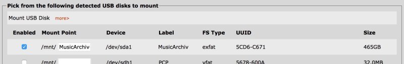 There's another step that I'd like to add, which involves mounting my Archive disk if it's inserted, and then rsyncing it with my backup copy. It's an exfat disk. If I boot the pCP Pi zero W with the following options, it mounts correctly: [image: http://www.cjh.me.uk/MyPhotobucket/cache/DIYHifi/exfat_800.jpg] But if it's not present at boot, or if I unmount, then I can't seem to subsequently mount it manually. Using this command: Code: -------------------- sudo mount /dev/sda1 /mnt/MusicArchiv -------------------- I get: Code: -------------------- mount: unknown filesystem type 'exfat' -------------------- Adding the '-t exfat' option gives the same result. How is it that 'exfat' is recognised at boot, but not subsequently? ------------------------------------------------------------------------ chill's Profile: http://forums.slimdevices.com/member.php?userid=10839 View this thread: http://forums.slimdevices.com/showthread.php?t=110496 _______________________________________________ ripping mailing list [email protected] http://lists.slimdevices.com/mailman/listinfo/ripping