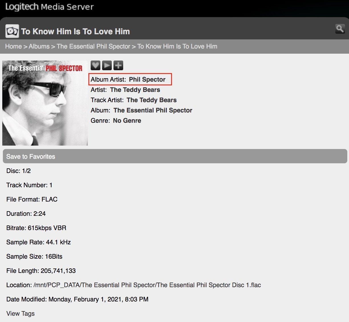 But if look under the top level 'Album Artists' in LMS, it says it's