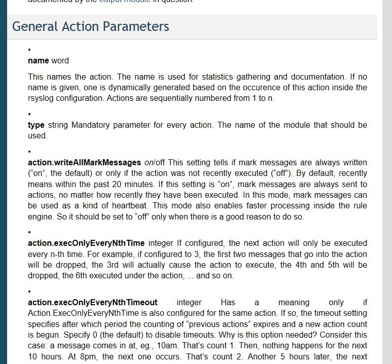 Mh... I am not sure if I see the changes. For example <http://www.rsyslog.com/doc/master/configuration/global/index.html>: This site is listing "$MarkMessagePeriod" as a global directive but it isn't. Only when using the old syntax... Same with <http://www.rsyslog.com/doc/master/configuration/action/index.html>: >From reading these docs I would expect I can set $FileOwner $FileGroup before my actions (new syntax) to specify defaults, but I cannot (mixing old and new syntax). But I don't get that information from reading the documentation. But as said, maybe you were working on other parts of the documentation... PS: Just an idea: Why don't you/we start with a *new* documentation? Throw everything away. Yes, for the beginning, many features will be undocumented (well, not really... the old documentation is still accessible) but this will allow us to get rid of all the current problems: 1) There's no consistency 1.1) See <http://www.rsyslog.com/doc/master/configuration/modules/omfile.html>: Template[templateName] DynaFileCacheSize(not mandatory, default 10 ZipLevel0..9 [default 0] ASyncWritingon/off [default off] IOBufferSize<size_nbr>, default 4k DirCreateMode[default equelly-named module parameter] 1.2) Sometimes the documentation is split in new/legacy syntax mode, sometimes not. Also the way we display the old/new syntax can be improved. 2) The visual appearance is not really readable, see <http://f.666kb.com/i/codcurab5nda9w1qk.jpg> (and the examples from 1.1, too). You all do your best to get these things fixed, but personally I think you cannot win. It is too much you need to fix. If we would start over, start with defining how we want to display information (to prevent things shown in 1.1; find a way how we want to show current and legacy syntax; how we want to structure) rewriting should be more easier than fixing these things today. ...and we should focus on the *new* syntax. The new syntax should be completely documented (currently, sometimes I have to read the source code to get some parameters or default values). Legacy syntax isn't that important and remember, the old documentation is still there. The important thing is: Keep the new documentation clean. Only rewritten documentation in our new "format" is allowed to get added. Maybe it will take a year or more to get where we are in the moment (in extent of documentation), but if we would start with the most important/common used parts, the new documentation will be better in 2-3 month than the old one ever was. Thoughts? -Thomas _______________________________________________ rsyslog mailing list http://lists.adiscon.net/mailman/listinfo/rsyslog http://www.rsyslog.com/professional-services/ What's up with rsyslog? Follow https://twitter.com/rgerhards NOTE WELL: This is a PUBLIC mailing list, posts are ARCHIVED by a myriad of sites beyond our control. PLEASE UNSUBSCRIBE and DO NOT POST if you DON'T LIKE THAT.