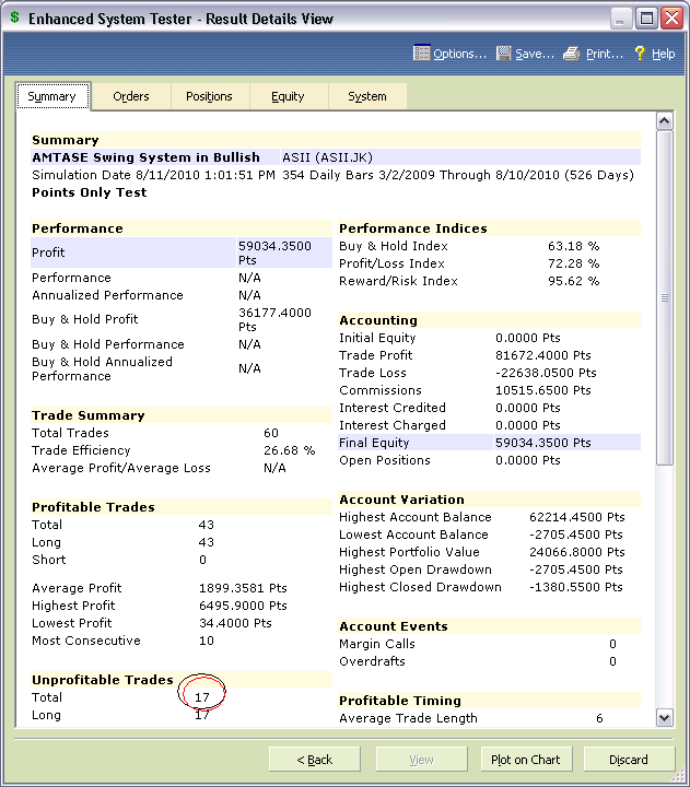 ----- Original Message ----- From: Paulus Tangke Allo To: [email protected] Sent: Wednesday, August 11, 2010 1:52 PM Subject: Re: [saham] ASII di Facebook tgl 6 Agustus Sessi I soal compatible, saya kan mengacu pada tabel yang anda buat sendiri ^_^ 2010/8/11 MetaStock Team <[email protected]> He he compatible kok Pak. Hanya saja kita sedang bicara di kasus spesifik yg hasilnya kurang memuaskan. Tapi banyak kasus lain di ASII very satisfying. "Karena nila setitik rusak susu sebelanga" tidak bisa diterapkan disini. Bisa aja Bapak nih. Di bawah ini adalah hasil backtest ASII selama uptrendnya. Ada 17 kali Loss trade. Kalau kita sedang berada pada tiap kasus loss itu tentu perasaan dan komentar kita thd sistem ini kurang positif. Hal yang sama kalau kita berada pada kasus profit di lowest profit Rp.34.4. Tapi bagaimana dengan yang 43 kali profit trade yang rata2 profitnya Rp1.899. Apalagi sewaktu mengalami higest profit sebesar Rp.6.495. Pasti senyum2 ya. Semoga bermanfaat. Jabar Erat, MetaSTock Team